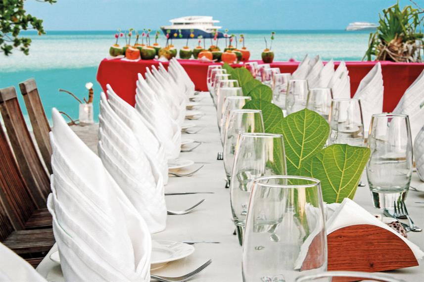 Scuba Package (15-17 dives), Spa Package (8 spa treatments), or Scuba & Spa Package (6 dives and 4 spa treatments) Transfer from and to the airport (on regular arrival and departure days only) Accommodation with three meals a day Welcome drink Unlimited drinking water Complimentary canned juices and selection of specialty teas and coffees during the breakfast Yoga classes every morning Snorkelling equipment BBQ on a deserted island Excursions Complimentary 1 GB Wi-Fi per person