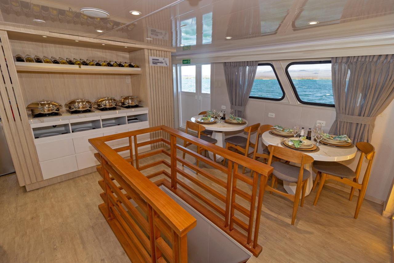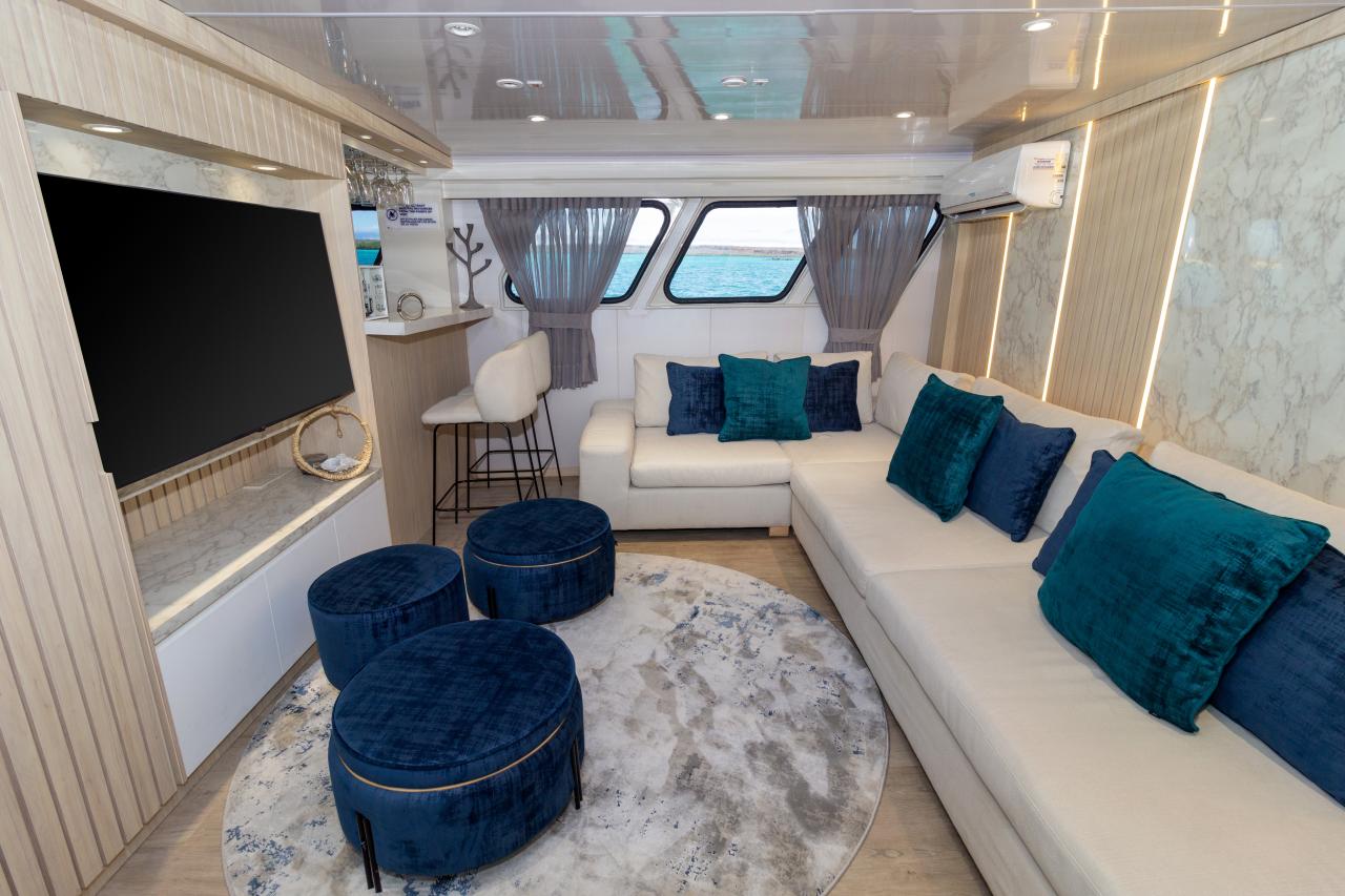 This exceptional liveaboard, totally refurbished in 2022, will take you to the most magnificent diving spots in the Galapagos Islands and allow you to discover its hidden underwater galaxy, providing a one-of-a-kind diving experience. With their skilled crew and cutting-edge dive equipment, explore the diverse undersea life in this marine reserve. Immerse yourself in a world-class diving experience surrounded by sharks, whales, manta rays, rays, turtles, penguins, iguanas, sea lions, and much more.