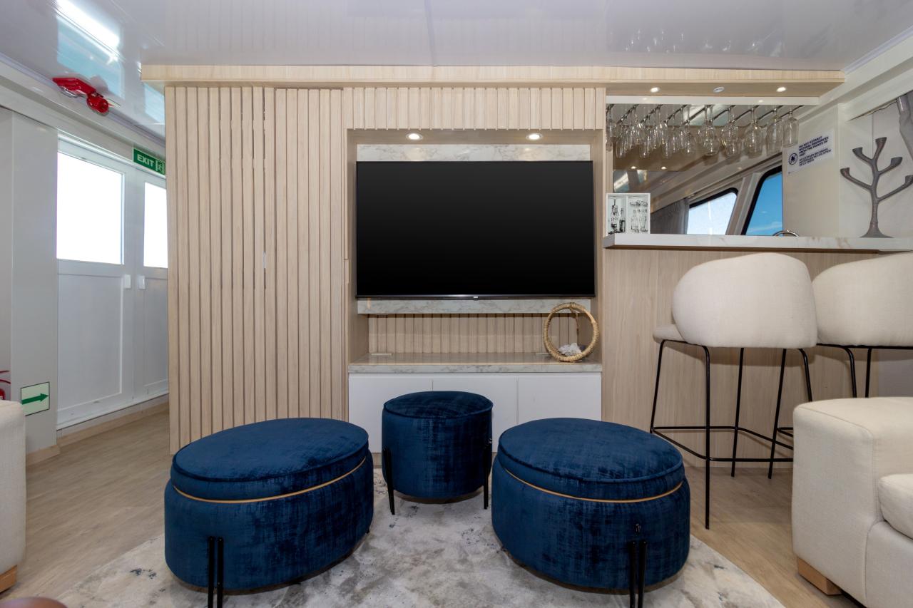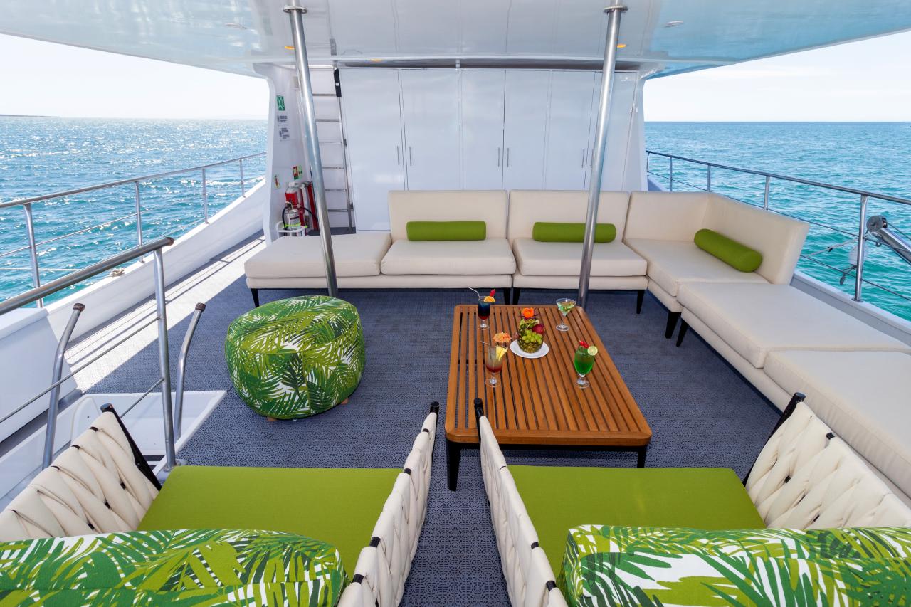 Dimensions Length: 29 mts / 96 ft Beam: 6.6 mts / 6.9 ft Performance Cruising speed: 8-10 knots On board Capacity: 12 passengers Crew: 8 members + 1 bilingual guide Operation and consumption Electric power: 110v and 220v Safety is very important to us, that is why we follow all national and international regulations in case of emergency. 2 survival rafts for 20 passengers each 1 survival raft for 8 passengers 30 life jackets, type A 25 life jackets, type B 6 lifebuoys with nylon rope Fire axes and Fire hoses CO2 extinguishers Flare gun, hand lights, smoke signals and other visual signals Fire suits, smoke signals. One tank with its autonomous breathing equipment First Aid Kit