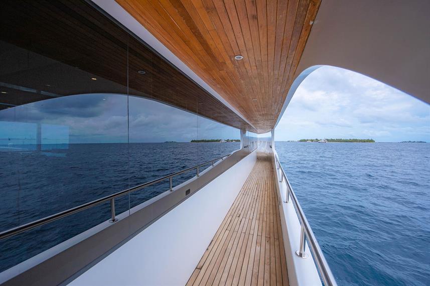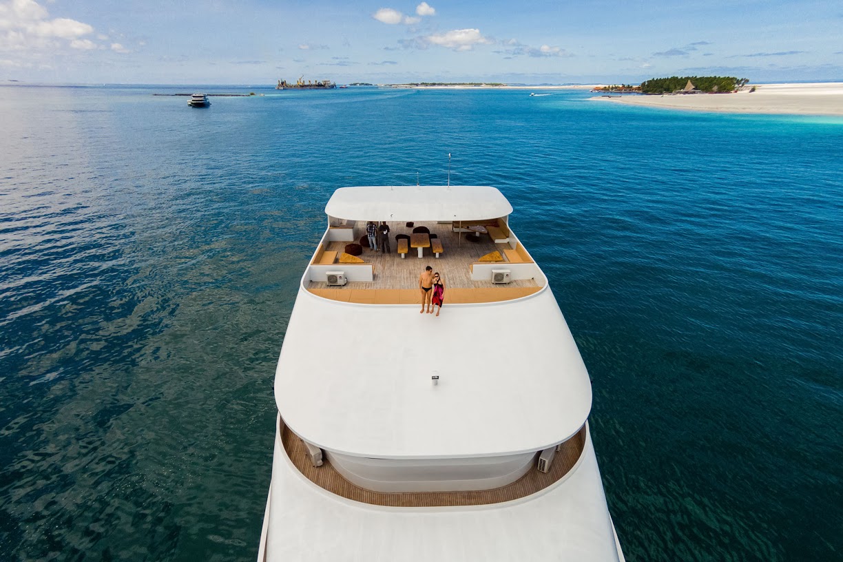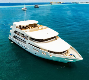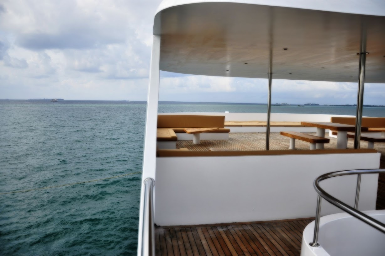 Year Built: 2014 Cabins: 11 Length/Width: 37m/10m Internet: Free Nitrox: YES($) Rental equip: YES($) Diving Services: ADAPTORS & TANKS Tanks with Don Valves Din Int Adaptors 1 5 L tanks Available Nitro Rental Equipment DIVING FACILITIES Battery Charging Station Warm-Water Showers Fish ID and Diving Books Spacious Dive deck Separate Boat/Dhoni FOR YOUR SAFETY Fire Alarm Fire Extinguisher Life Jackets Life Rafts Emergency Oxygen Kit First Aid Kits Automatic External Defibrillator (Aed) Emergency Positioning Radio Beacon