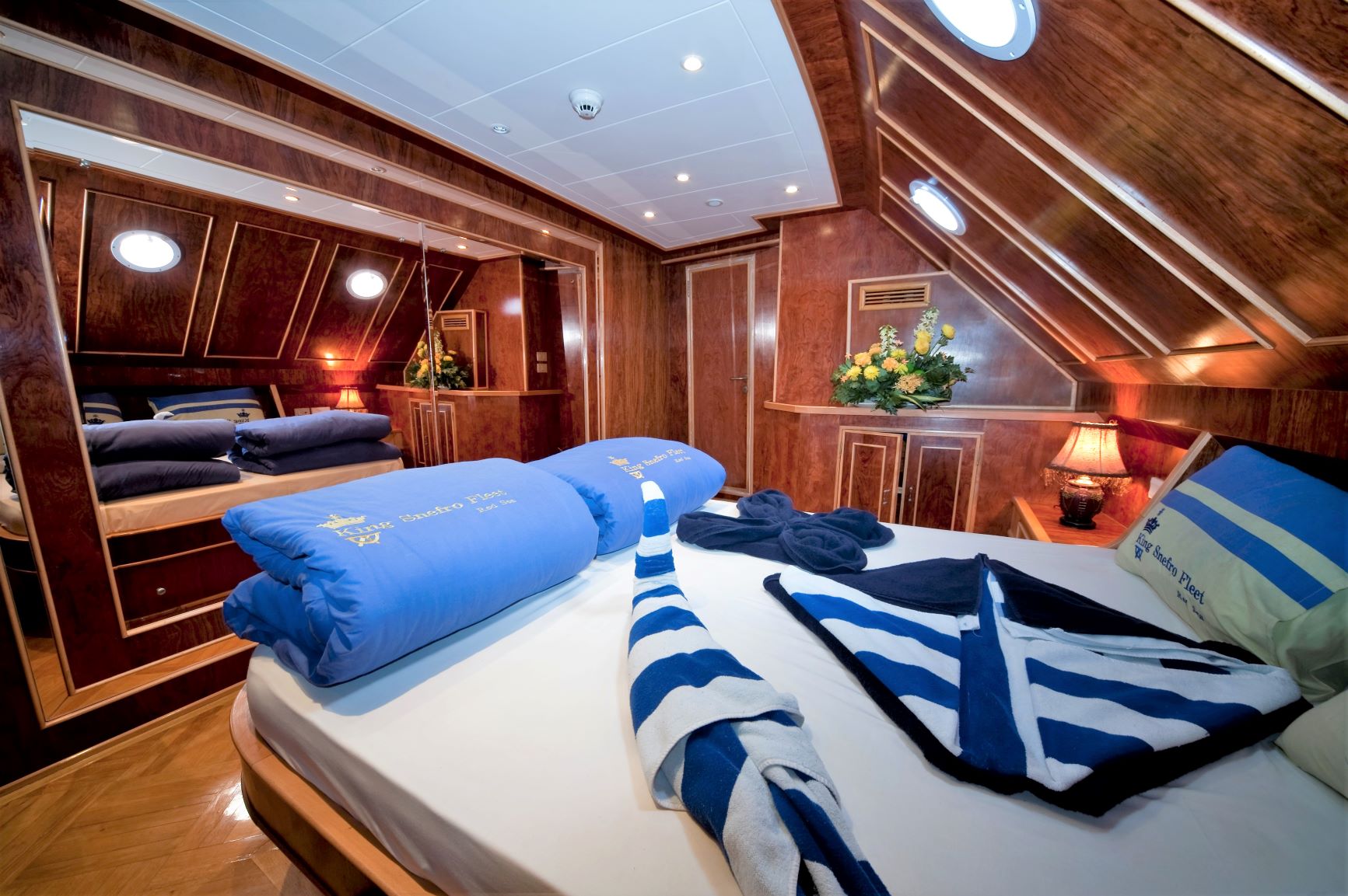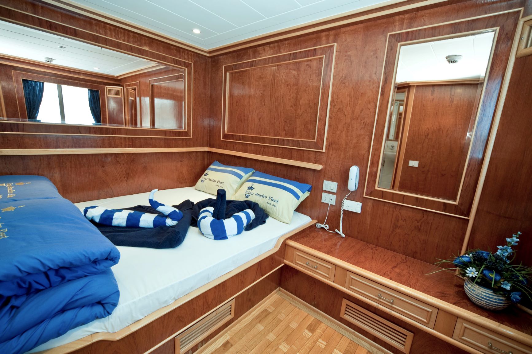 Twin Berth Cabin - This 7 to 8m² cabin is a twin berth cabin: 2 single beds side by side with en-suite bathroom and hot-water shower. The cabin is air-conditioned, and bedding and 2 towels per guest are provided. Electricity supply is 220V with European-style 2-pin plugs. Inside the cabin, there are life jackets, a fire extinguisher, a smoke detector, and a safety box for personal belongings. Maximum Occupancy: 2 Persons Bed Configuration: Twin Ensuite: Yes Aircondition: Yes, with control in the room. Double Bed Cabin - This spacious 9 m² double bed cabin has a queen size bed, a wide window, an en-suite bathroom, and a hot-water shower. The cabin is air conditioned and is equipped with a mini bar, bedding, and 2 towels per guest are provided. Electricity supply is 220V with European-style 2-pin plugs. Inside the cabin, there are life jackets, a fire extinguisher, a smoke detector, and a safety box for personal belongings. Maximum Occupancy: 2 Persons Bed Configuration: Queen-size bed Ensuite: Yes Aircondition: Yes, with control in the room. Master Suite - This spacious 12 m² suite has a queen-sized bed, en-suite bathroom, and hot-water shower. The cabin offers a cabinet, shelves, and mirror, is air-conditioned, and is equipped with a minibar. A bedding and 2 towels per guest are provided. Electricity supply is 220V with European-style 2-pin plugs. Inside the cabin, there are life jackets, a fire extinguisher, a smoke detector, and a safety box for personal belongings. Maximum Occupancy: 2 Persons Bed Configuration: Queen-size bed Ensuite: Yes Aircondition: Yes, with control in the room.