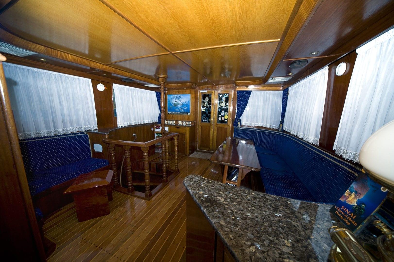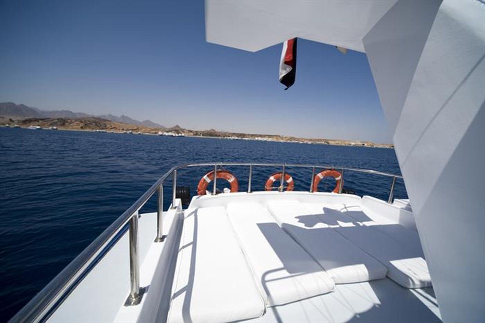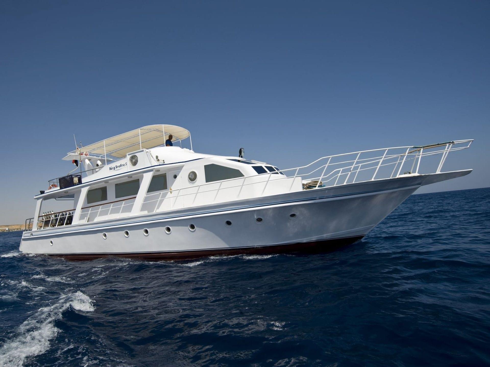 Legendary King Snefro 5 and King Snefro 6, her twin ship, were specially constructed in Alexandria, Egypt, in 1999. The 22 m long and 6 m broad yacht underwent a significant refurbishment in 2018 to only have room for 8 divers. The boat is for divers who choose underwater exploration above high-end luxury amenities without sacrificing service or safety.Dive in small groups while seeking a comfortable full charter boat to dive into Sinai's greatest sites.Delectable meals will be served in the exquisite first-class dining room. For your convenience, snacks, water, tea, coffee, and soft drinks are accessible continuously.On the cabin deck, there are 5 air-conditioned bunk bed cabins, 2 of which have an ensuite bathroom and 3 of which share two bathrooms that are connected directly to your cabin (the two front cabins, however, are accessible only by hallway). Like all bathrooms, this one provides both hot and cold water at all times.Your diving will be comfortable and safe thanks to the newly designed diving area with two ladders leading to the diving platform and the zodiac support. Additionally, there are usually a few 12-litre Alu-Tank Nitrox tanks on board for sharing. If additional tanks are needed, they can be ordered in advance and will be added to the boat.King Snefro 5 sails from Sharm El Sheikh (New Marina, El Wataneya) on all Mini Safaris and holds ISO Certification for Recreational Diving Service Providers (EUF: S 000063 until 30.06.2021) and is a member of the Chamber of Diving and Watersports (CDWS: SSSB 0014 S).