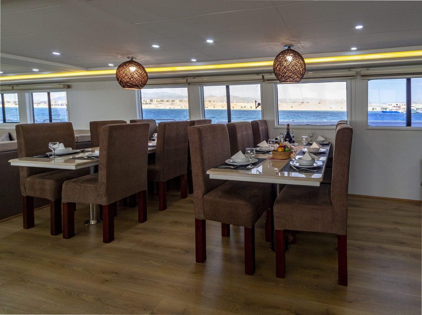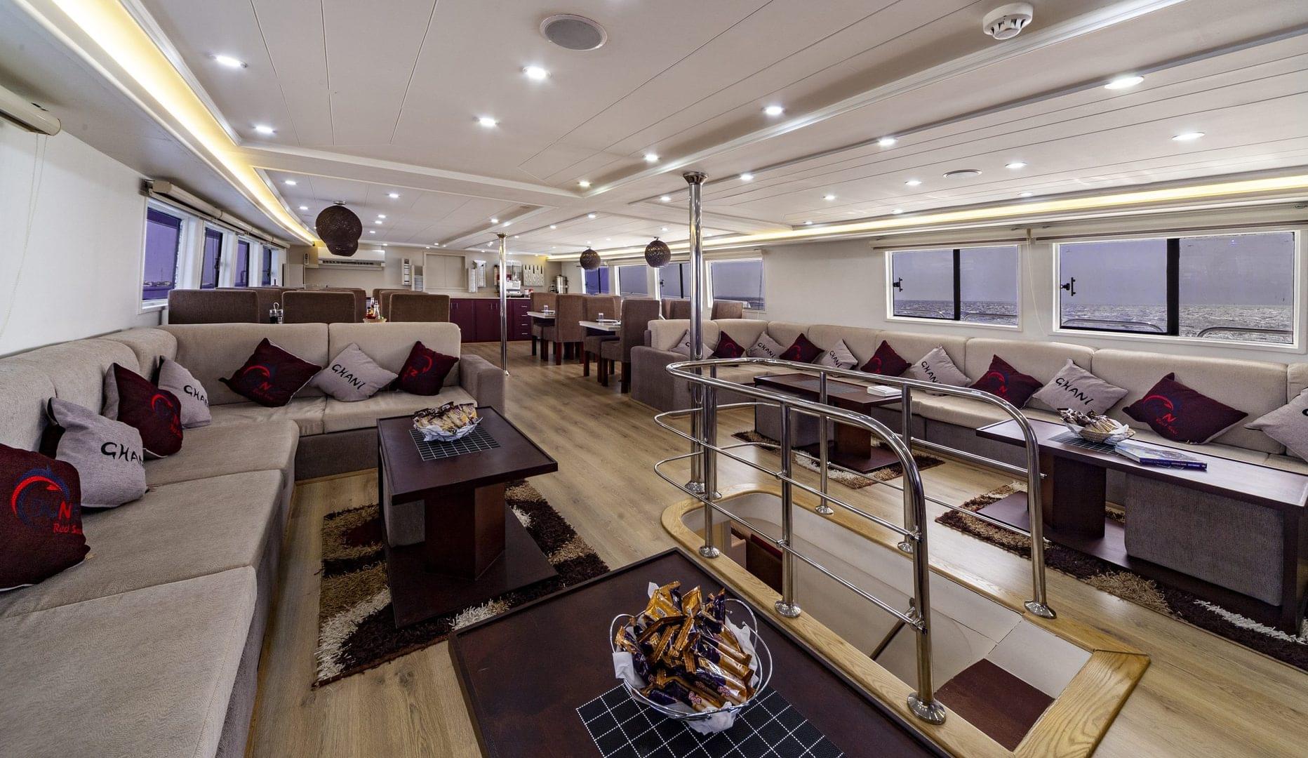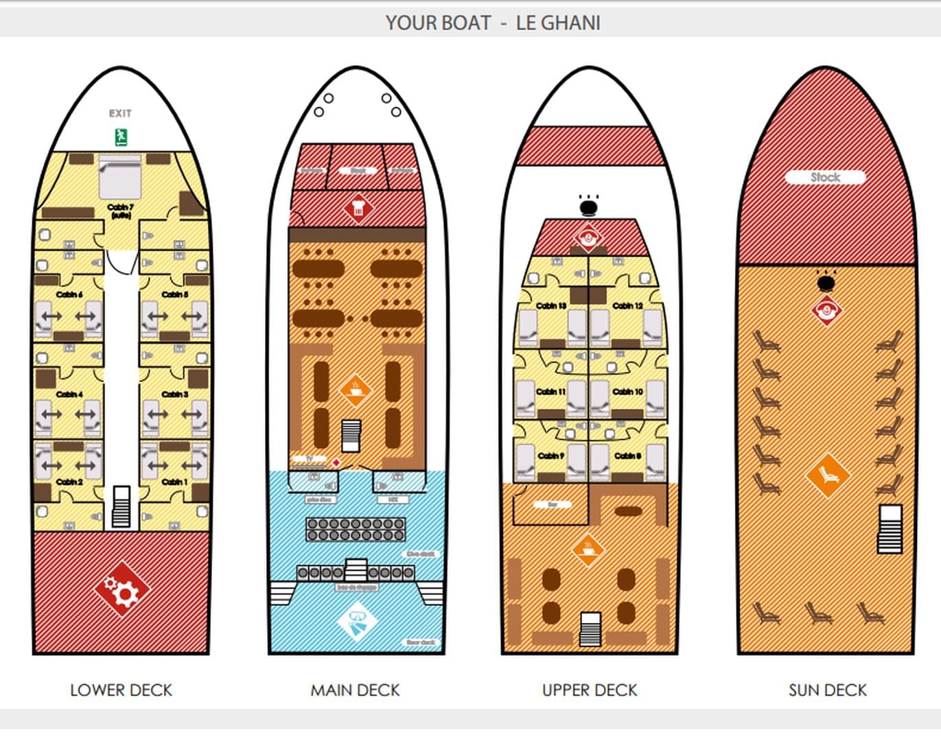 Built-in 2003, it underwent an extensive renovation in 2019 to provide you with constant luxury while traveling around Egypt on a liveaboard. The protagonist of Frank Herbert's well-known science fiction book DUNE is where the boat's name originated. The Ghani is perfect for your Red Sea diving excursion, including a sun deck, a big lounge-dining area, a shaded upper deck with a bar, and 11 rooms (plus 1 suite) that are all furnished with showers and toilets. This is a cozy, contemporary yacht where comfort is key!The whole crew will be available to you and at your service. The knowledgeable and enthusiastic staff at Dune Red Sea will take you on a guided dive where you will learn about the amazing seabed and have an experience you won't soon forget. Following a day of diving at Egypt's most well-known dive sites, you may unwind in the boat's relaxation room and share stories with other divers about your discoveries and the amazing spots you've just seen.