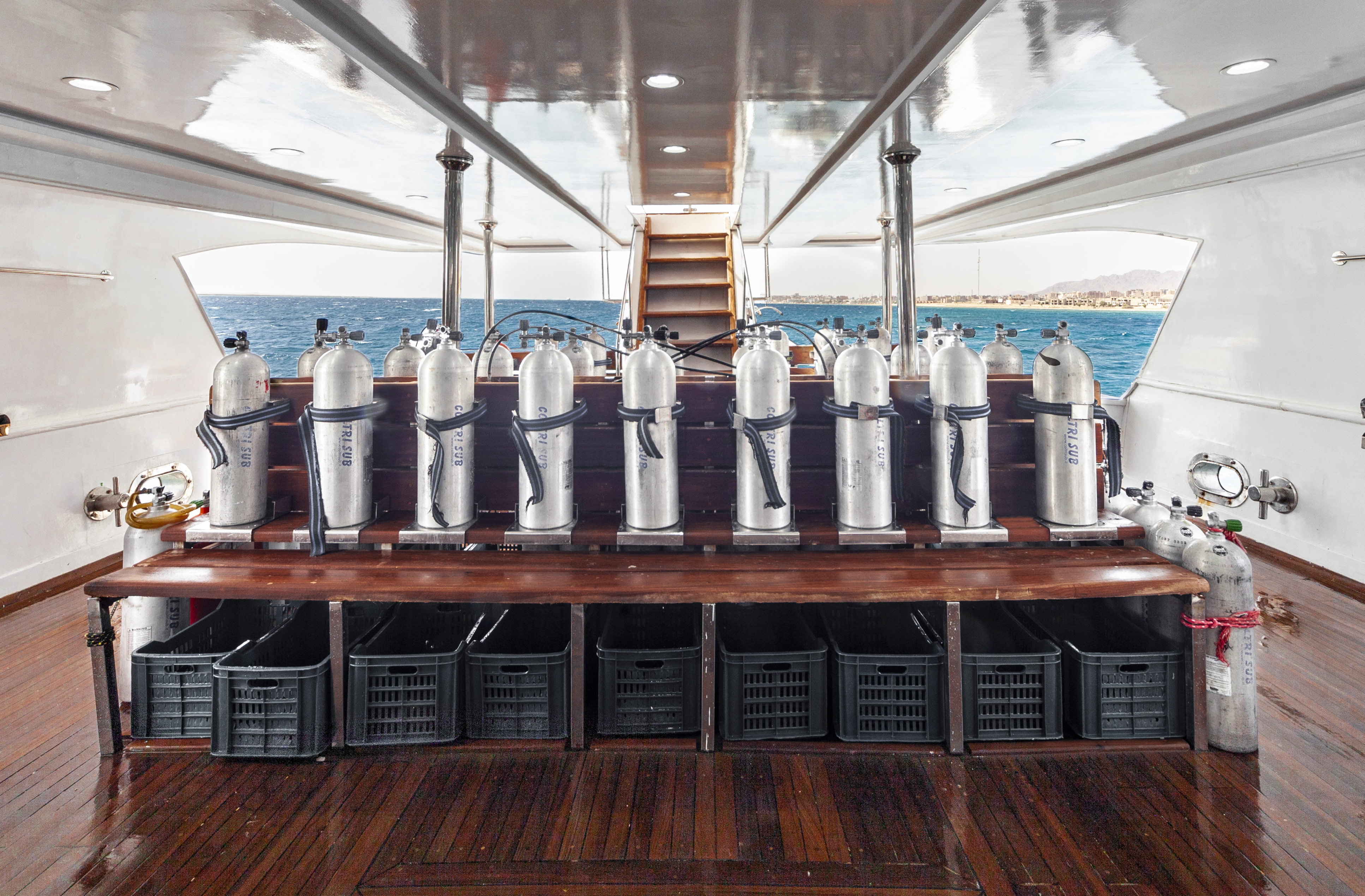 Engine: Nissan RFID 261 HP Speed: 6-8 knots Electricity: 220 volts Guests: 18 Divers Staff 20 Crew members Engine: 189 Tonnes