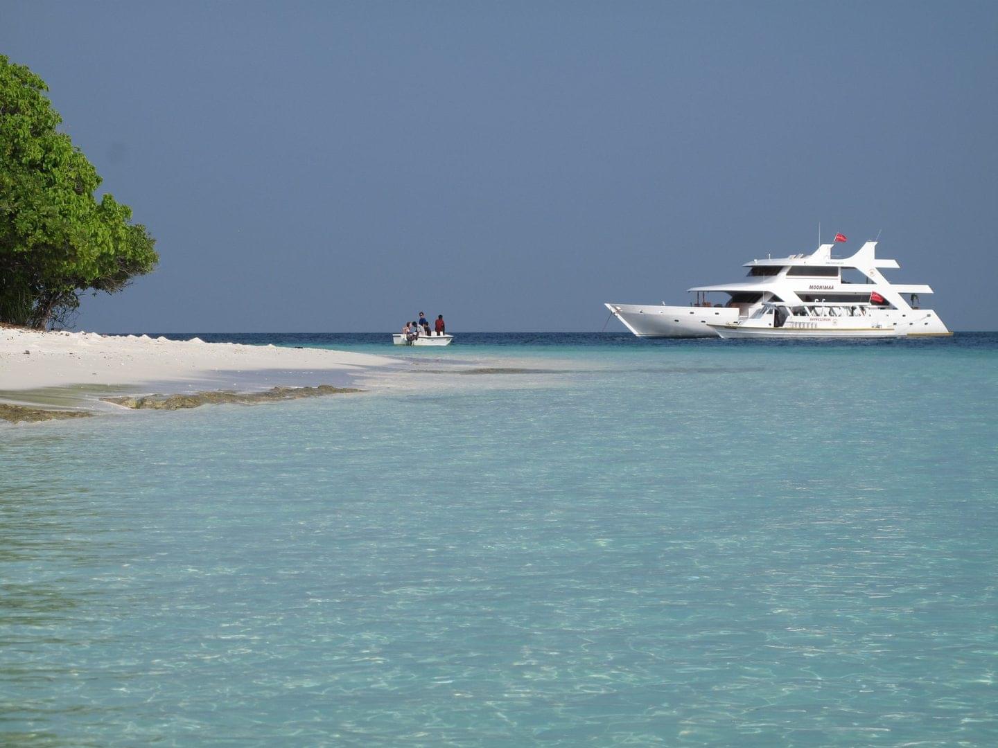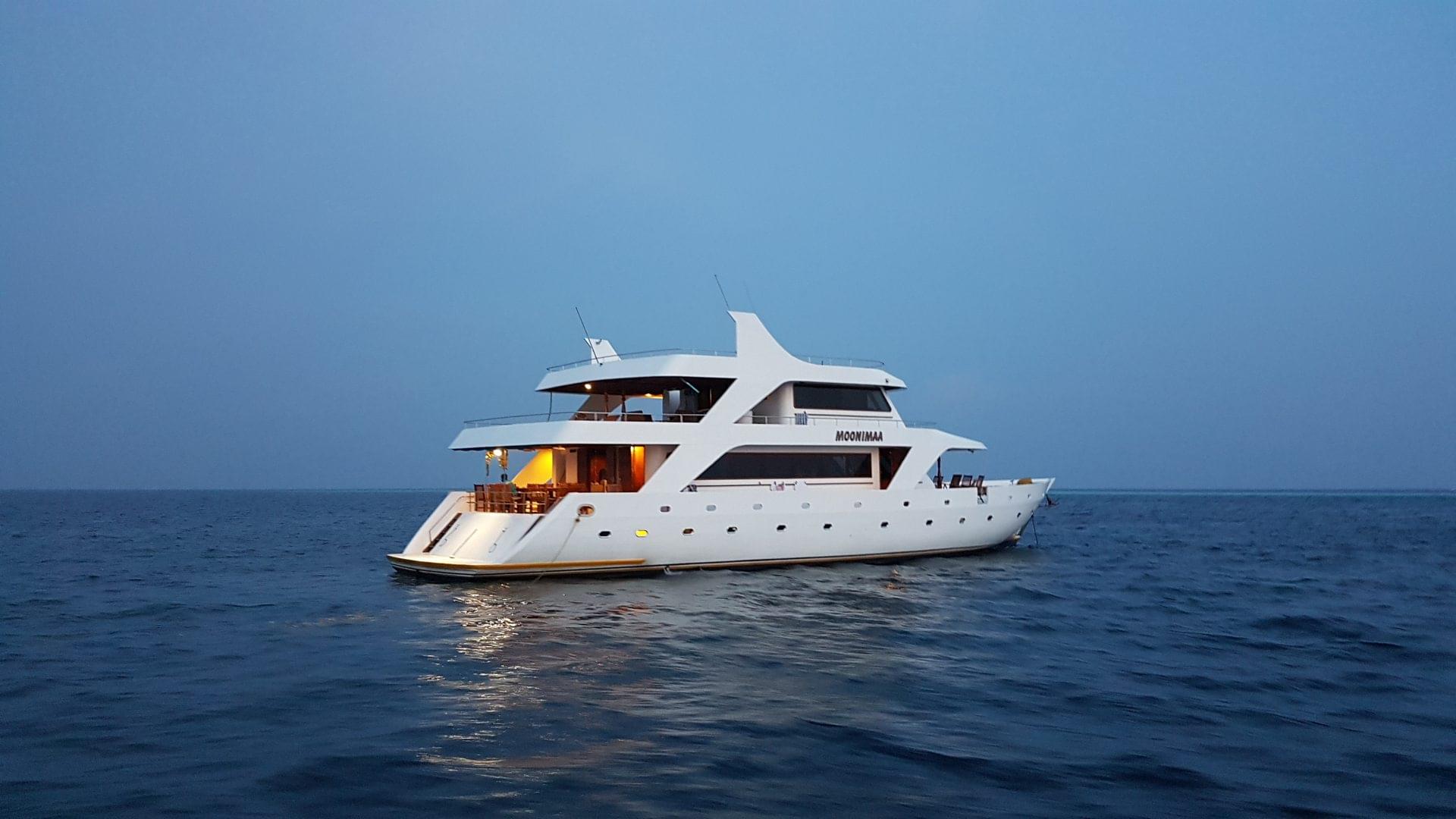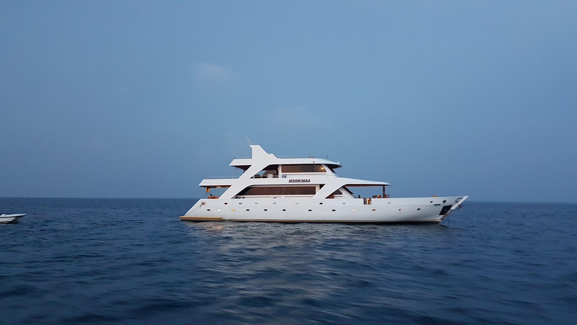 The 30m liveaboard provides world-class diving excursions in the Maldives. The Moonima has recently received a thorough makeover to the highest standards of service and safety and offers a cozy and pleasant setting. A maximum of 20 guests accommodated in 10 cabins, each with a private bathroom and individually controlled air conditioning. There is an air-conditioned inside lounge on the main deck with a bar, comfortable sofas, chairs, and tables, TV/DVD/CD, a high-fidelity stereo, and a collection of literature and board games. On the second deck is a lounge area with a corner bar that serves a variety of cocktails, beers, wines, and international liquors.Additionally, the boat features two sundecks with sunbeds, a shaded area, and a lounge area at the bow.