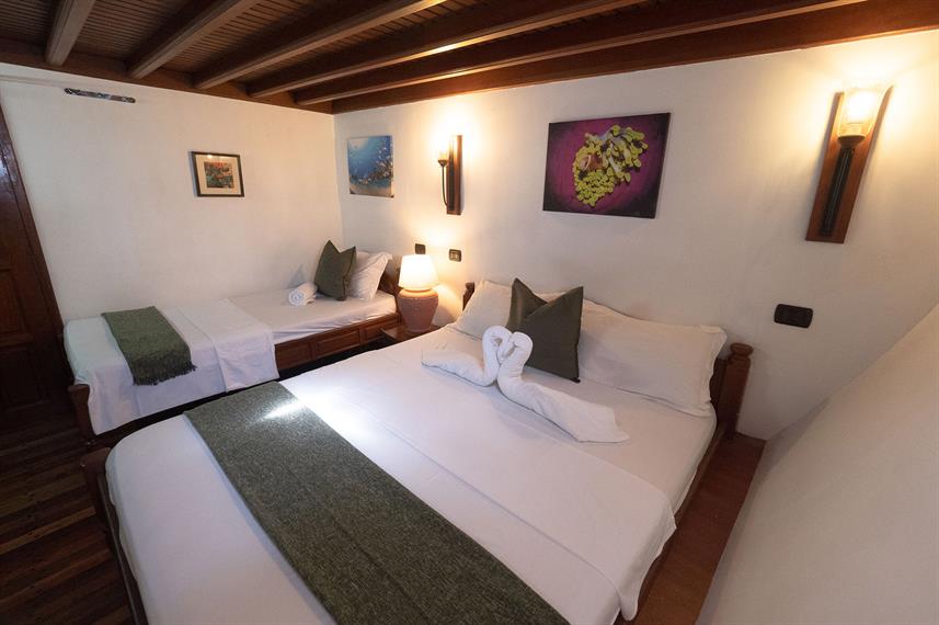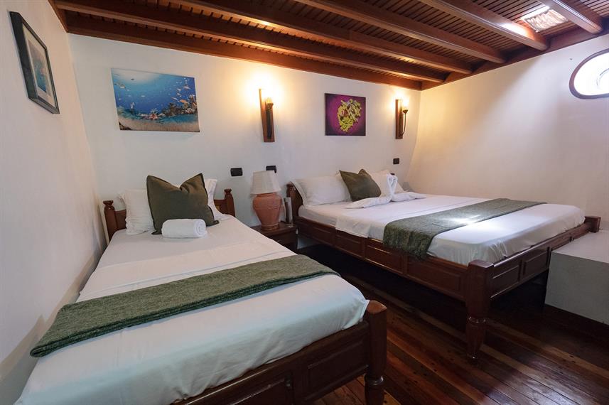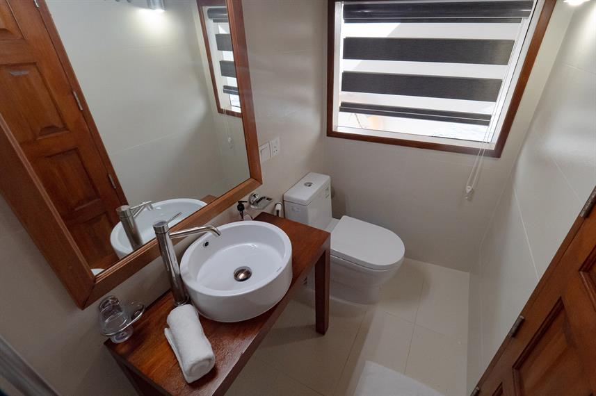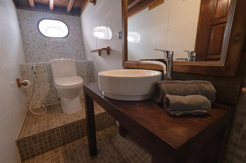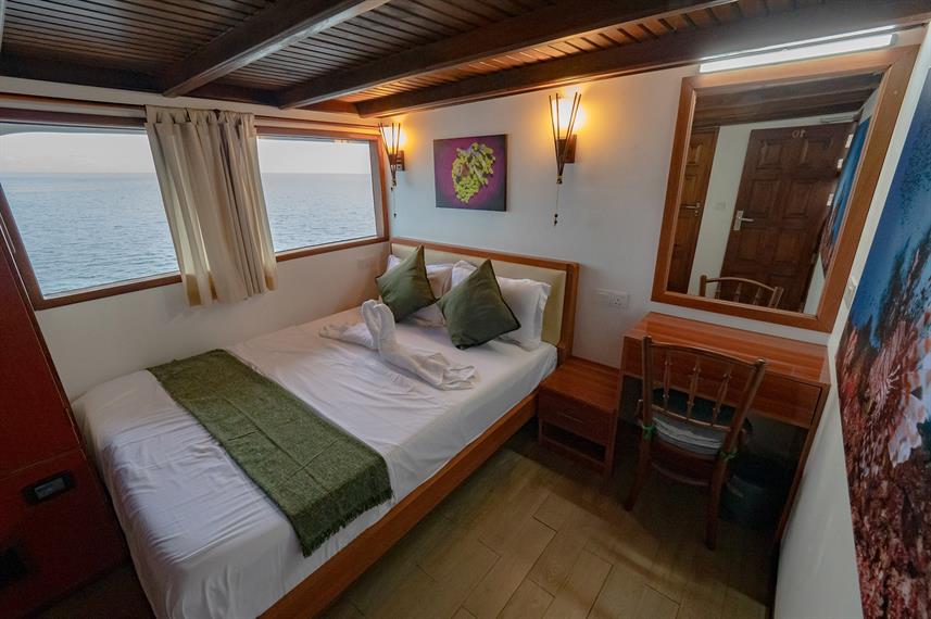 Standard Double/Twin Cabin - The cabins are located on the lower deck. Each cabin is completed with its own bathroom, portholes, and individual air conditioning. Maximum Capacity: 2 persons Bed Configuration: Double/Twin, Double, Single and Double (cabin 4) Ensuite: Yes Aircon: Yes, with control in the room Upper Deck Cabin - The cabins are located on the upper deck with large panoramic windows (can’t be opened). Each with its own bathroom and individual air conditioning. Maximum Capacity: 2 persons Bed Configuration: Double Ensuite: Yes Aircon: Yes, with control in the room