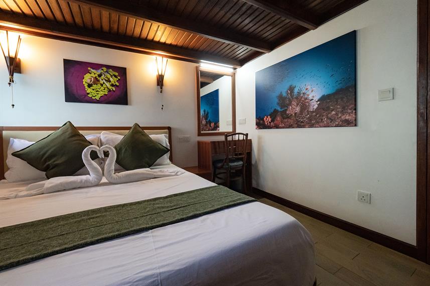 Accommodations with government tax meal plans, snacks, drinking water, tea and coffee, room towels, airport transfers, diving packages, fishing, land travel and snorkeling guides.