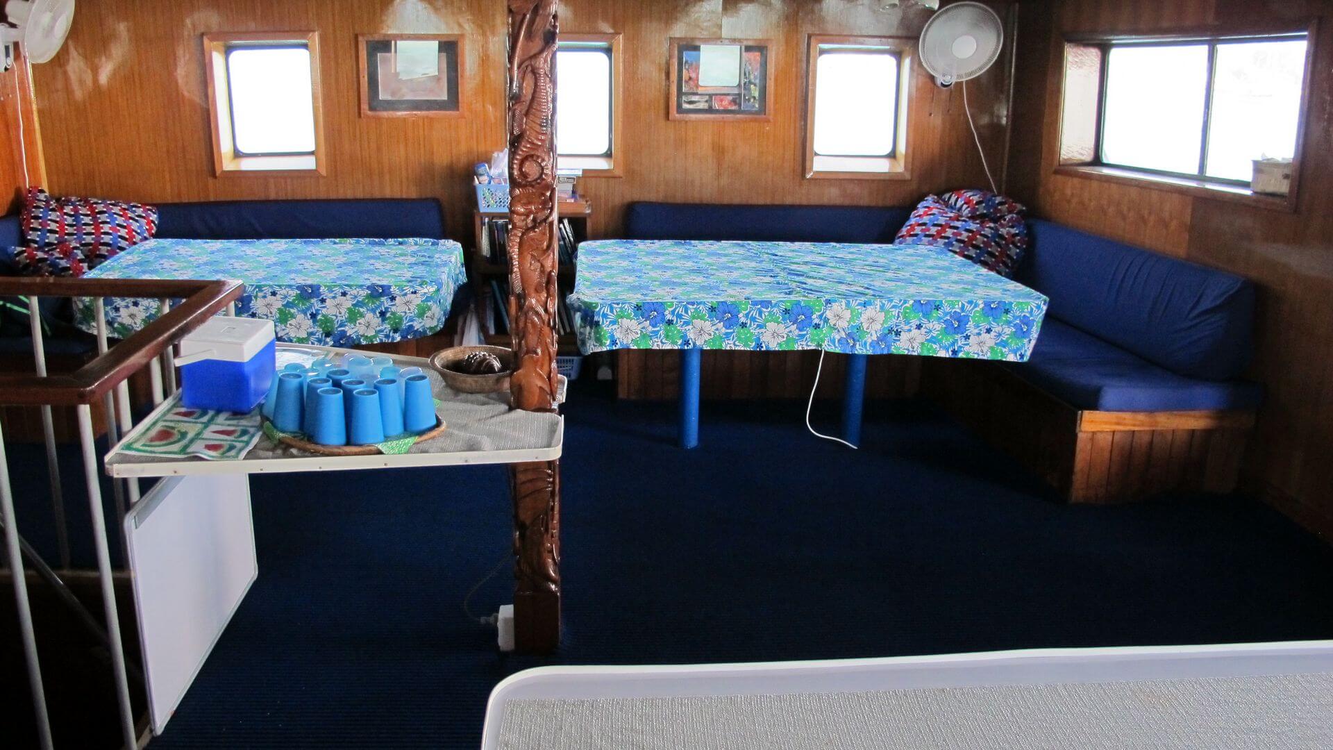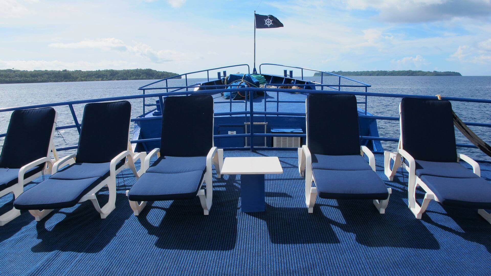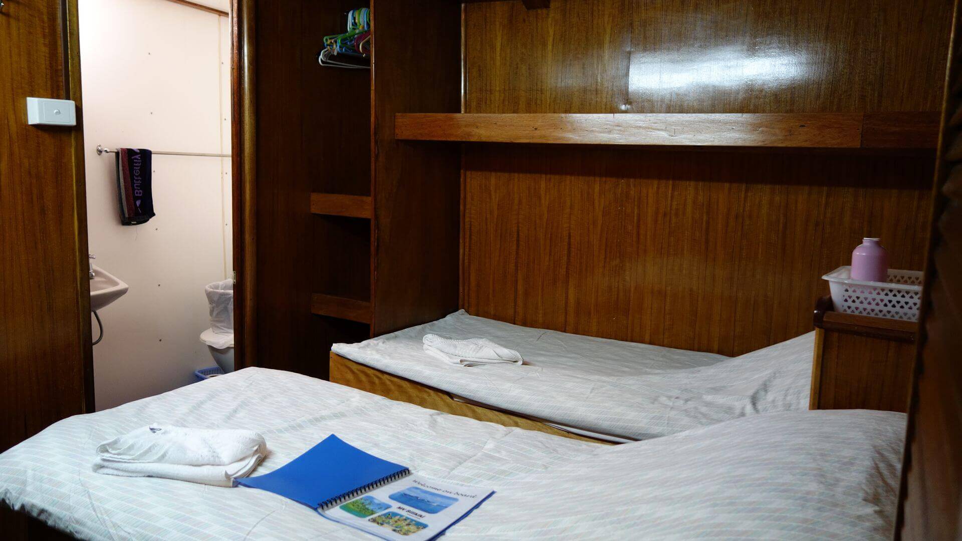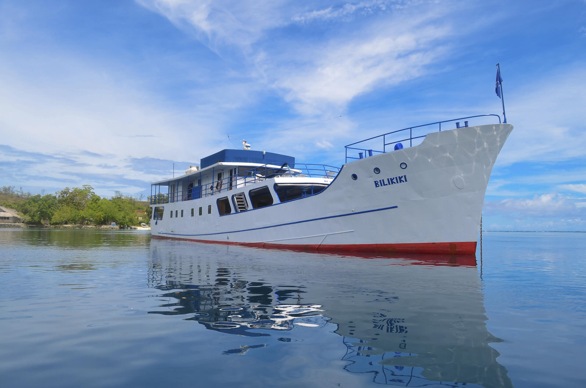 MV Bilikiki has 10 deluxe cabins, eight with a double bed and single bunk and two with twin single beds and no bunk (cabins #1 & 2). All cabins are air conditioned and have their own en-suite. There is a large sundeck, comfortable lounge and camera area and spacious dive deck. Her large size and a hull that was built for South Pacific seas are two main reasons why guests from around the world still say that "the Bilikiki" is one of the most spacious and comfortable vessels that they have travelled on.