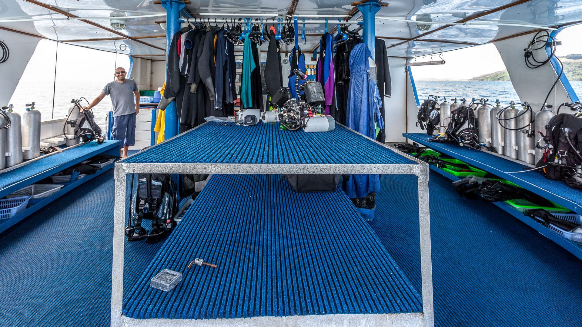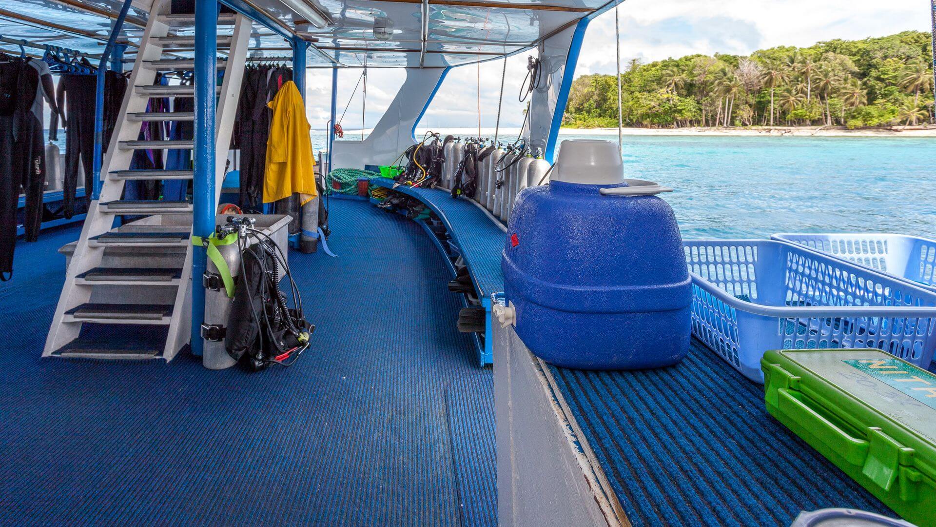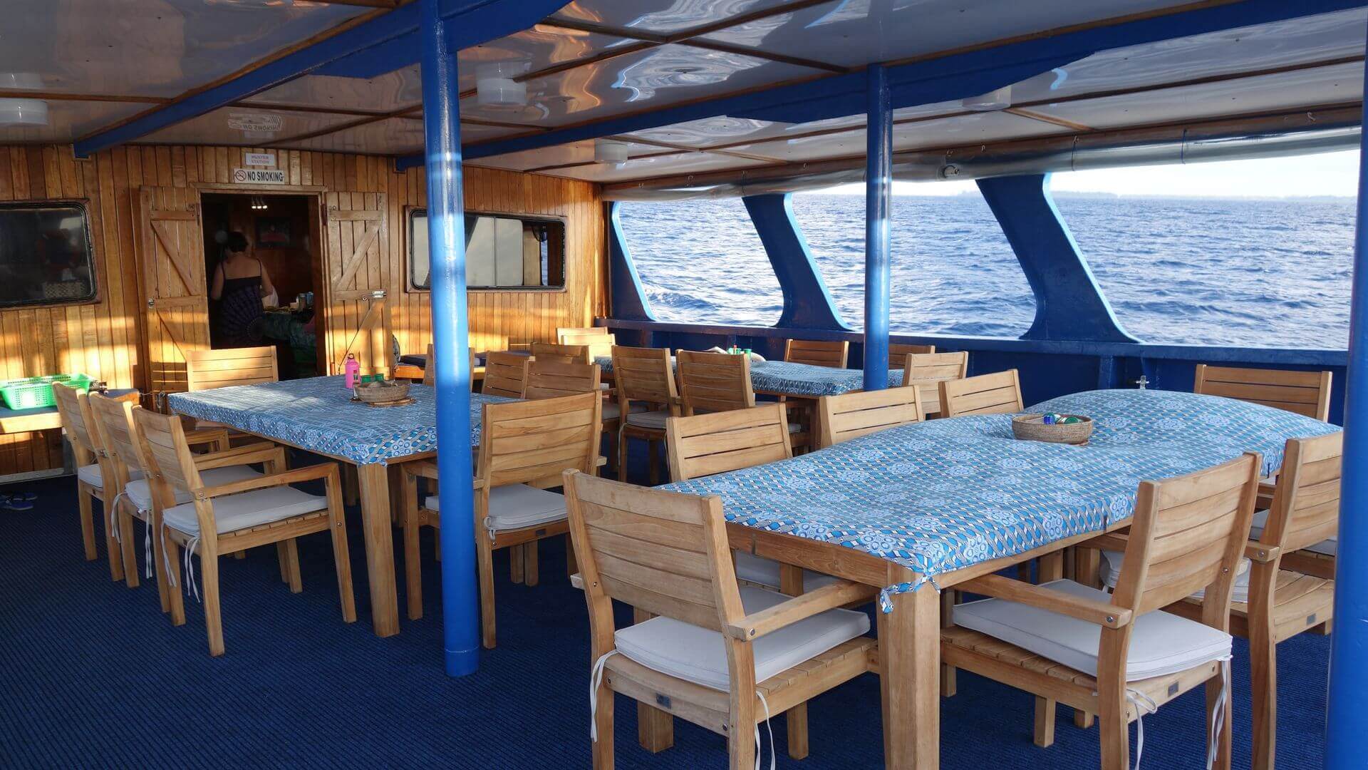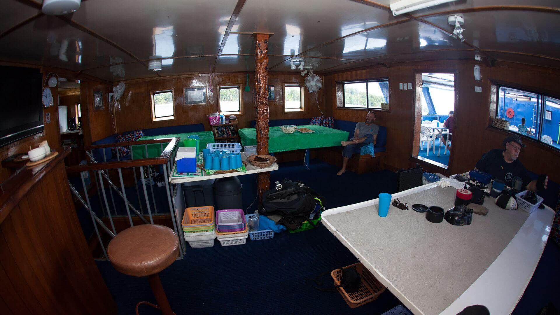 MV Bilikiki has 10 deluxe cabins, eight with a double bed and single bunk and two with twin single beds and no bunk (cabins #1 & 2). All cabins are air conditioned and have their own en-suite. There is a large sundeck, comfortable lounge and camera area and spacious dive deck. Her large size and a hull that was built for South Pacific seas are two main reasons why guests from around the world still say that "the Bilikiki" is one of the most spacious and comfortable vessels that they have travelled on.