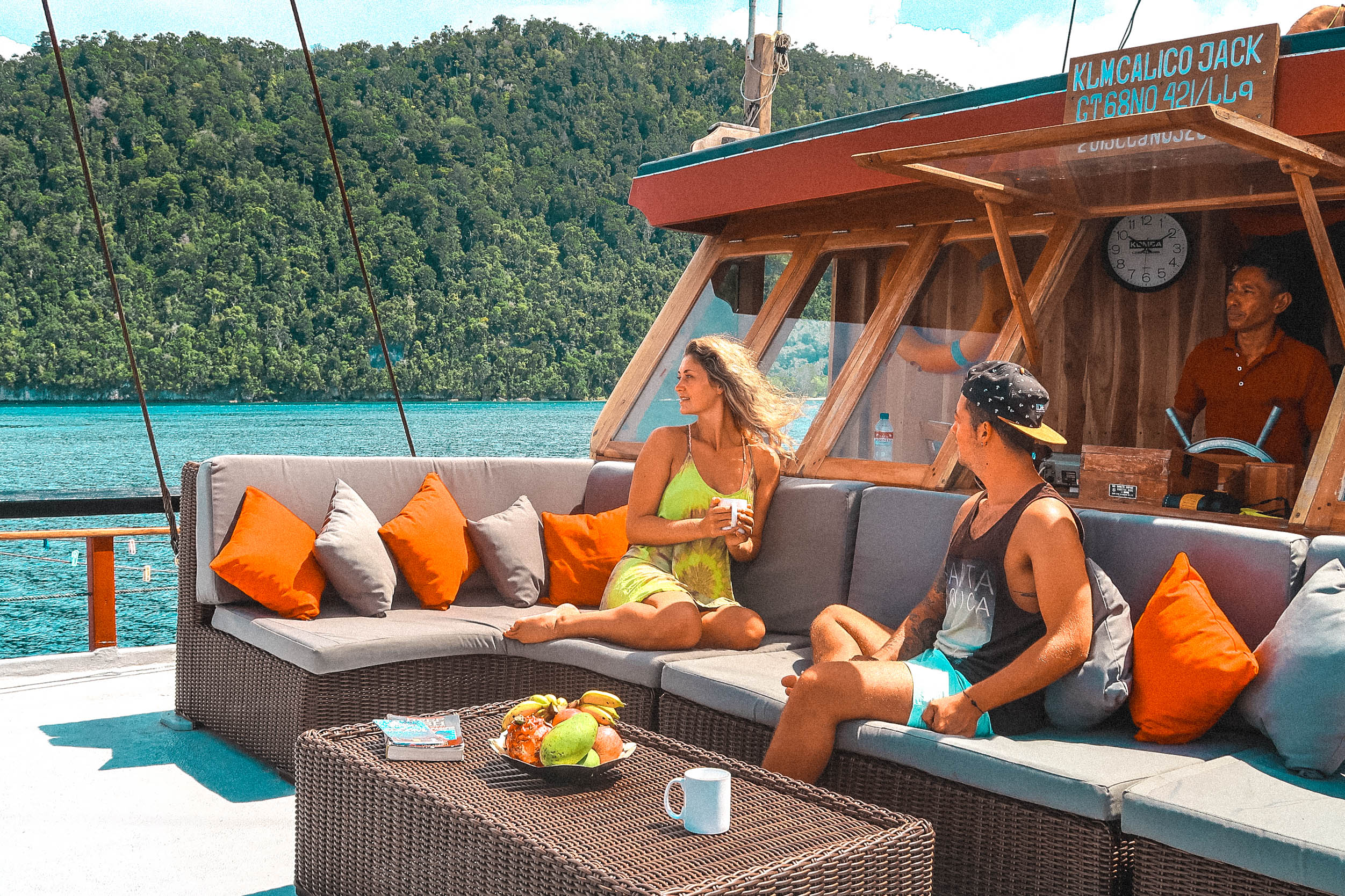 The 30-meter wooden schooner Calico Jack is designed to take you to some of the best diving spots in Indonesia, including Raja Ampat, Cenderawasih Bay, Triton Bay, and Banda Sea (Maluku). These Coral Triangle regions offer the most diverse diving in Indonesia and can arrange cruises all year.The spacious accommodations, tasty meals, welcoming personnel, charging stations, and island/beach activities available on land will make your time onboard Calico Jack special. Because of their many years of operational expertise in Indonesia, the diving crew can expertly advise on the best dive sites, underlying conditions, currents, and aquatic life encountered. Ten people can be accommodated in five spacious cabins, each with a private bathroom, air conditioning, and adjustable configuration possibilities for double or single beds. The Cruise Director is proficient in English, French, Spanish, and Indonesian and has worked on Indonesian liveaboards for 13 years.The guide professional to diver ratio is 1:5, with the diving instructor always following the group, keeping an eye on the requirements, and assuring safe, pleasurable dives. They respond to each guest's needs and make sure everyone is safe and comfortable. During any dive, two dive guides and a dive instructor will gladly serve as spotters. The best dive sites in Indonesia are easily accessible on two-speed boats. To finish out your live-aboard vacation in Eastern Indonesia, each journey includes a variety of inland and non-diving activities.