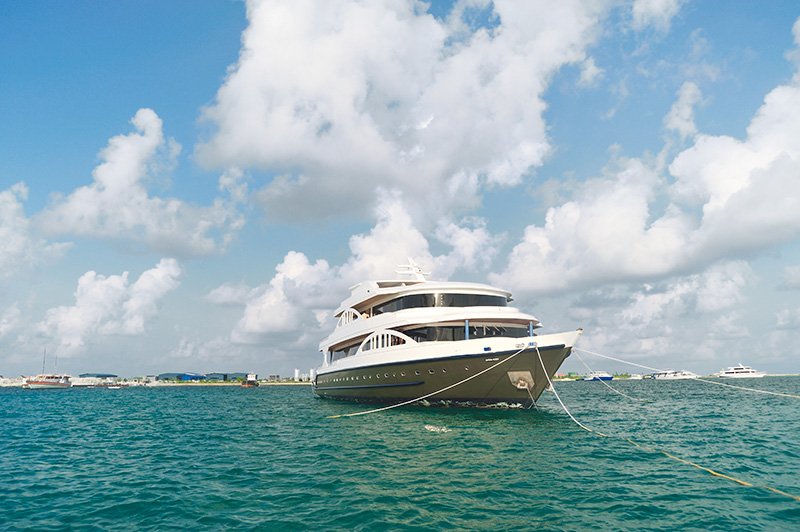 7 nights 8 days schedule Three full board meals, afternoon snacks, unlimited coffee and tea. Free Night Rocks (for qualified people only). Unlimited bottled water service 17 diving (2–3 diving per day / No diving on first check-in day) Tank, weight and nightlocks. Experienced professional diving guide Airport pick-up, drop-off, all other means of transportation. GST 12% for Accommodation One-time deserted island barbecue (variable depending on the weather) Male and Rocal Island Tour