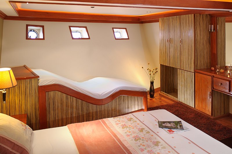 Check-in 1:00 (Pick-up service available on arrival time) Check-out Choose between 7 a.m. and 9 a.m. Room and Boat Guidance It consists of 8 cabins and all rooms are twin beds, which are shared by 2 people, and it is convenient to have independent hot water and air conditioning toilets and showers. Room and Boat Details Distinguished Content Lower Deck 5 Double/ Twin Bed Rooms Main Deck 1 single cabin, bar space, dining room, lounge living room space Upper deck 1 jacuzzi Two Twin Double Upper Deck Rooms Sun Deck Relaxed Sunten Lounge crew boat crew 12 people/ 3 diving donny crews/ 2 diving guides