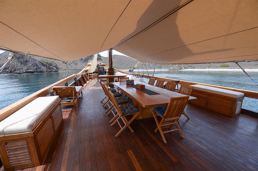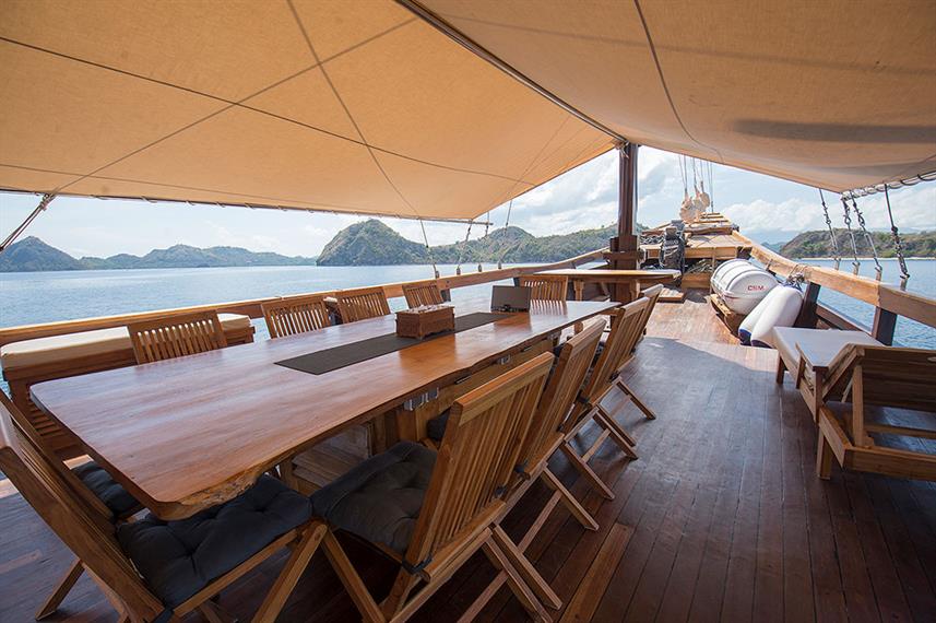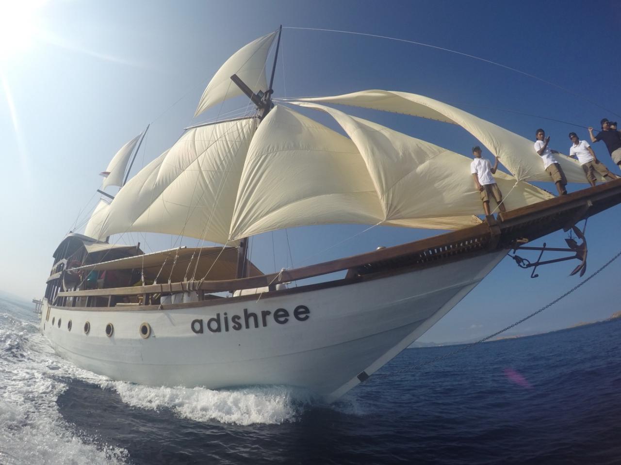 The Adishree Phinisi boat, designed in 2015, will be a great way to enjoy the water and feel the breeze. A calming effect may be obtained at speeds of 8 knots, and a capacity of 12 guests is the optimal number to enable you more privacy without creating too much noise.Adishree Phinisi boasts eight well-qualified crew members who will be happy to provide the best services to its guests. There are two types of cabins available to the guests: one Master Cabin with two beds and four double cabins (with an additional bed for two rooms). In addition to having ensuite bathrooms and air conditioning, every accommodation has hot water available. Enjoy the amenities, which include a sizable patio space, a bar, indoor dining with a lounge area, and a flat-screen TV. To further improve guest comfort, three sundecks with bean bags and comfortable couches are available. To pass the time, guests can participate in the dive komodo. Safety has become one of Adishree's primary concerns. As a result, 24 life vests, four life buoys, and first aid kits are always on hand. This ship also has GPS, a marine radio, and a VHF radio. Adishree Phinisi Liveaboard ensures that your trip will completely occupy your leisure time. Aside from that, this is a fantastic opportunity to explore Komodo Island in a variety of ways.