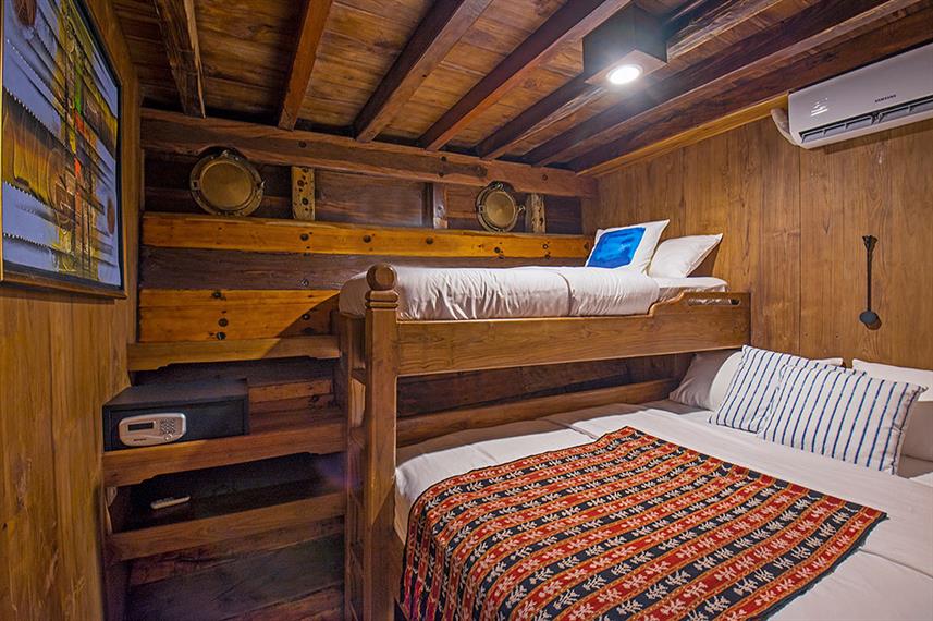 Master Cabin - A double-bed cabin positioned on the upper deck with a view of the ocean. Each accommodation features air conditioning, an ensuite bathroom, and hot water. Maximum Occupancy: 2 persons Bed Configuration: Double Ensuite: Yes Aircondition: Yes, with control in the room Double Cabin - Four cabins with double beds (plus 1 extra bed for 2 cabins). Each accommodation features air conditioning, an ensuite bathroom, and hot water. Maximum Occupancy: 2 persons Bed Configuration: Double Ensuite: Yes Aircondition: Yes, with control in the room