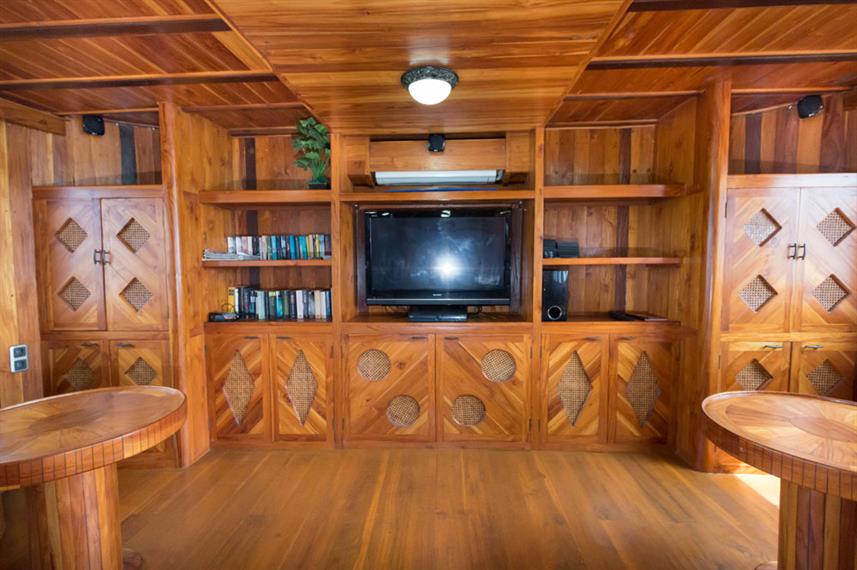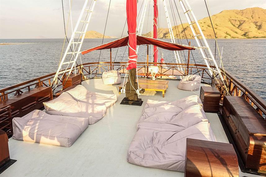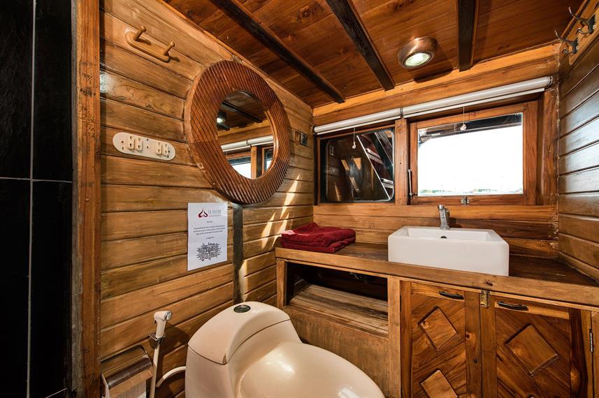 The 33m La Galigo Dive Liveaboard Indonesia was built in 2012 by traditional South Sulawesi craftsmen as a two-mast Phinisi sailing boat. The La Galigo was created by an avid diver with comfort and the liveaboard diving lifestyle in mind.Seven independently regulated air-conditioned staterooms with private bathrooms and a double bed featuring a deep spring mattress in the American style are available on the La Galigo. If you're looking for even more luxury, choose "The Suite," which has everything you need for the ultimate liveaboard experience, including a 48" HD TV with a PS4 and 270-degree views on a private balcony.On the main deck is the spacious living and dining area with plenty of power outlets for setting up laptops, cameras, and other electrical devices, as well as a huge TV and a well-stocked bookcase. The head chef's creations of Indonesian and international cuisine are also available for consumption.