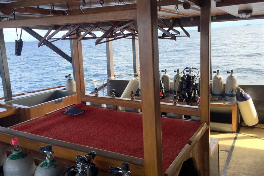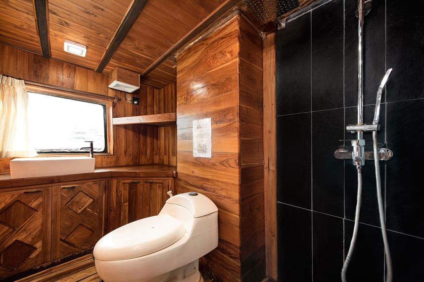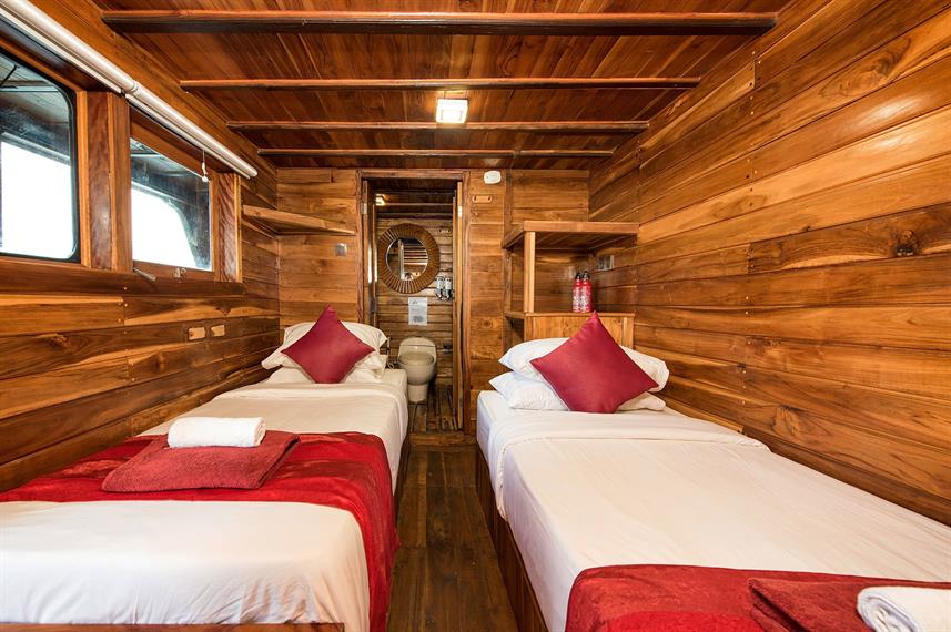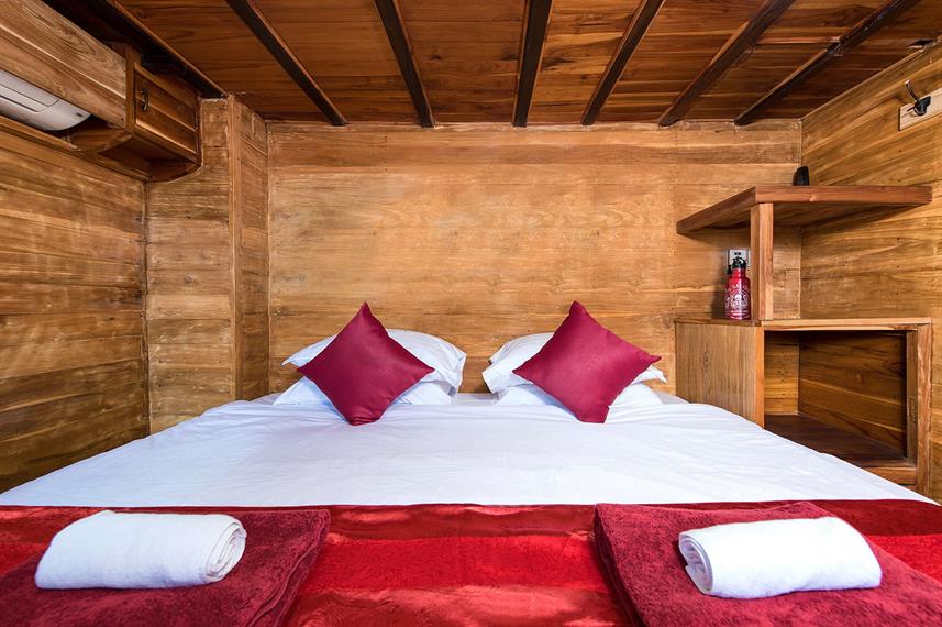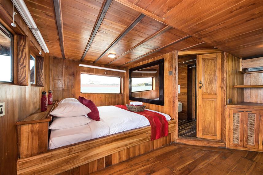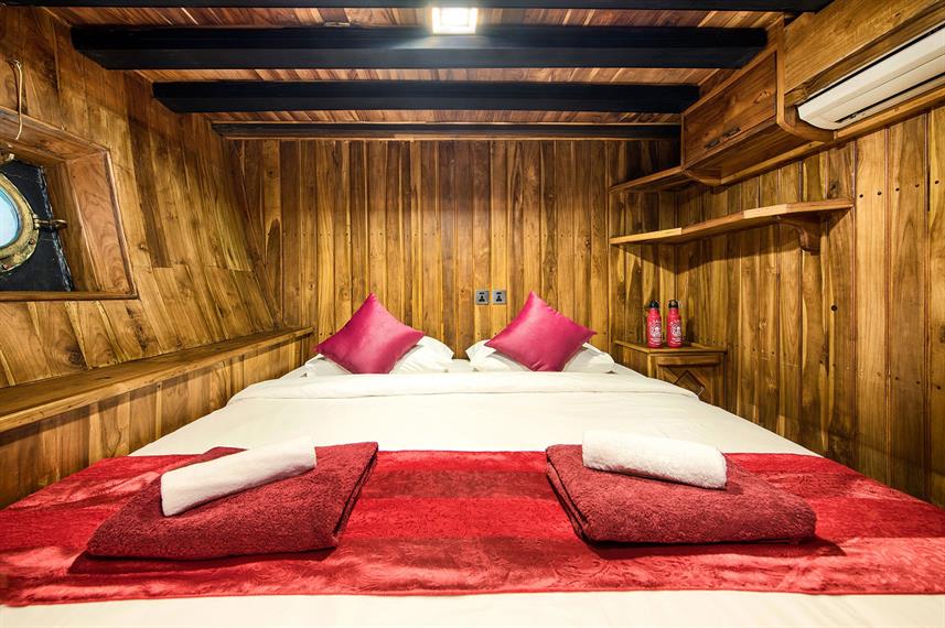 Lower Deck Deluxe Cabin - All deluxe cabins come with a private en-suite bathroom with hot water showers, climate control, and American spring mattresses. The deluxe option is perfect for anyone who might suffer from sea sickness due to their lower positioning on the vessel and their tendency to move less if there is some swell. The rear two deluxe cabins may be altered to accommodate 2 singles or 1 double. Maximum Occupancy: 2 persons Bed Configuration: Double or Twin Ensuite: Yes Aircondition: Yes, with control in the room Upper Deck Master Cabin - The master cabins are located on the upper deck, a little more secluded, and a great place to wake up in the morning to witness sunrise, a room with a world class view. Both master cabins have private en-suite facilities with hot running water, A/C with in-room control, and American spring mattresses for your comfort. Both master cabins can either be prepared as two single beds or a double . Maximum Occupancy: 2 persons Bed Configuration: Double or Twin Ensuite: Yes Aircondition: Yes, with control in the room Upper Deck The Suite - The Suite is the premium option when it comes to your liveaboard experience, with a 48” HD flatscreen TV, private lounge room with sofas and coffee tables, and an exquisite private balcony with seating for both dining and relaxing. The balcony offers 270 degree panoramic views of the Archipelago, and is a delightful place to unwind after a hard days diving. With an oversized en-suite, powerful A/C system, and large American spring mattress, prepare to be comfy. The Suite also has its own refrigerator. Maximum Occupancy: 2 persons Bed Configuration: Double (king-sized) Ensuite: Yes Aircondition: Yes, with control in the room