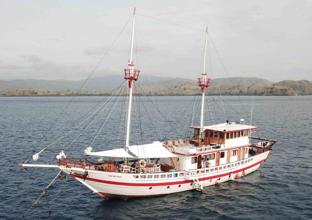 Sinar Pagi Liveaboard, a traditional wooden boat called a phinisi, provides superb diving, snorkeling, and cruising pleasure in Labuan Bajo. It would be a fantastic pleasure to go sailing with Sinar Pagi Liveaboard, and visitors could make use of first-rate amenities. On the Sinar Pagi, seven spacious cabins may sleep up to 14 people. Each cabin features air conditioning a private bathroom with a hot shower and a choice of five double beds or two twin beds. While not diving or snorkeling, visitors can unwind on the sun deck and in the covered outdoor lounge area. The professional and certified team at Sinar Pagi consists of a captain, boatman, engineer, and ground staff. A good chef who serves Indonesian cuisine ensures you have the most incredible experience possible with Sinar Pagi Liveaboard. Sinar Pagi's goal is to provide guests with a unique sense of comfort and warmth. They also want all guests who join the trip to be spoiled with outstanding service and personalized attention.