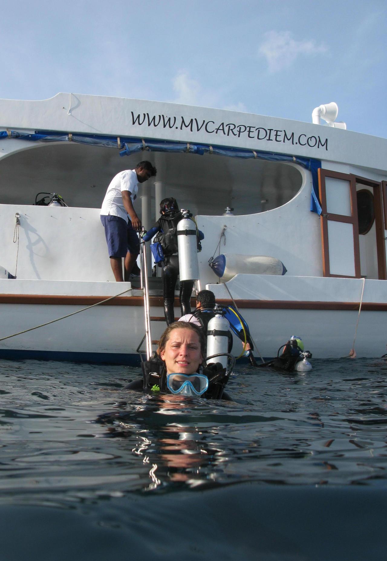 The Carpe Diem, the first vessel in the Carpe Diem fleet, launched in 2008 and served as the impetus for the establishment of the business Carpe Diem Maldives Pvt. Ltd. The Carpe Diem was entirely constructed out of wood in the Maldives by the boat's owner, Amir Mansoor. The yacht can accommodate up to 20 passengers and has 10 staterooms spread across 3 decks. A tiny speedboat (dinghy) and a diving dhoni (tender) are present with the boat). The Carpe Diem can accommodate tours for select groups that include scuba diving, surfing, fishing, or customized cruises.The three-person local dive crew from Carpe Diem can accommodate divers of any experience level and can guarantee that divers of all nationalities have a memorable diving memory thanks to their wealth of expertise. The Carpe Diem offers the typical three dives per day on itineraries specifically designed for scuba diving. The Carpe Diem is distinguished even more by the service offered by a committed team, some of whom have worked for the business for a very long time. Returning clients referred to it as "coming home"A motor safari yacht measuring 35 meters in length, the MV Carpe Diem has a wooden hull. It has a sundeck and three decks.