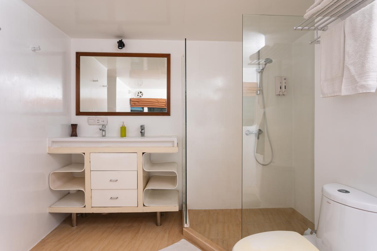 The Carpe Vita has 10 comfortable cabins of different standards divided over 3 decks. The different cabin types are VIP suite (2), Superior (2), and standard (6). All cabins have individually controlled AC, safety deposit boxes, life jackets, and their own private bathroom with a toilet and hot water shower. The electricity voltage on board is 220V and the plugs are of 3 pins UK type. Standard Cabin - Each room provides individually controlled air conditioning, one queen bed and one super single bed, a desk/chair, dresser, hanging closet, TV/HD player, portholes, private ensuite bathroom with shower. Cabin No. 5,6,7,8,9 & 10. Maximum Occupancy: 2 persons Bed Configuration: Single and Double Ensuite: Yes Aircondition: Yes, with control in the room Upper Deck Suite - VIP rooms feature individually controlled air conditioning systems, as well as a king size (Canadian) or super single beds, dresser, hanging closets, large windows, flat panel TV/HD player, private ensuite bathroom with dual sinks, separate shower and bath. Cabin No. 1&2. Maximum Occupancy: 2 persons Bed Configuration: Double or Twin Ensuite: Yes Aircondition: Yes, with control in the room Main Deck Superior Cabin - Each has a king-size bed which can be divided into two super singles and desk, dresser, hanging closet, large windows, individually controlled air conditioning systems, flat panel TV/HD player, and private ensuite bathroom with shower. Cabin No. 3&4. Maximum Occupancy: 2 persons Bed Configuration: Double or Twin Ensuite: Yes Aircondition: Yes, with control in the room