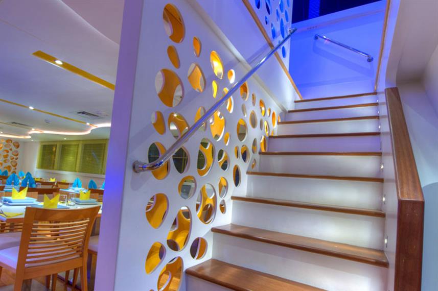 Standard Cabins - There are seven cabins located on the lower deck. Each cabin with two single beds, a spacious storage. an independent air conditioning unit, and an ensuite bathroom. Maximum Occupancy: 2 persons Bed Configuration: Twin (2 Single) Ensuite: Yes Aircondition: Yes, with control in the room Main Deck Cabins - There are four cabins on the main deck, two with a queen-sized bed and two with a double bed and an additional sofa. Each cabin is opulent and comfortable, with a window, storage space, an independent air conditioning unit, and an ensuite bathroom. Maximum Occupancy: 2 persons Bed Configuration: Double Ensuite: Yes Aircondition: Yes, with control in the room Upper Deck Cabins - There are two cabins on the upper deck, one with a double bed and the other with two single beds. Each cabin is opulent and comfortable, with a window, storage space, an independent air conditioning unit, and an ensuite bathroom. Maximum Occupancy: 2 persons Bed Configuration: Double or Twin Ensuite: Yes Aircondition: Yes, with control in the room