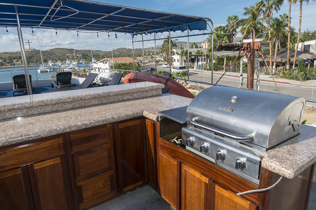 Year built: 2004 Length: 30 meters Deck area: 130 sq meters Beam: 6.5 meters Top speed: 8 knots Cruising speed: 7 knots Engines: Mitshubishi 8 cylinder 270 Hp Diesel Max guests: 10 Number of cabins: 5 Number of bathrooms: 6 Tenders: 3x 5m fiberglass Yamaha 40hp and 25hp Water capacity: 5000 litres Fuel capacity: 5000 litres Freshwater maker: 800 litres / day