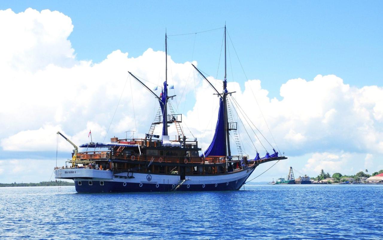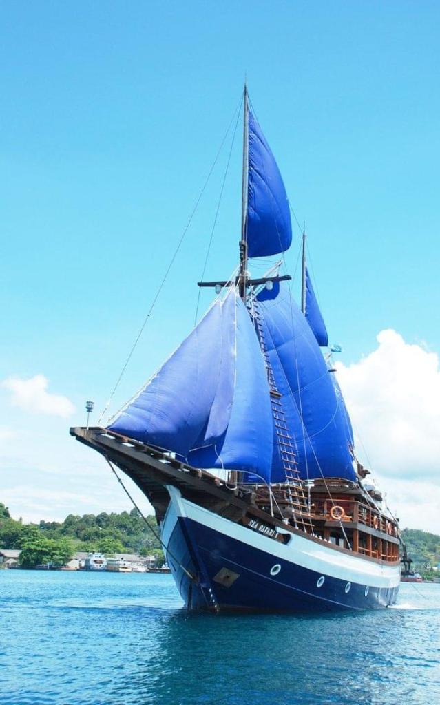 Type: Phinisi Buginese Schooner Build Material: Ulin / Ironwood Flag: Indonesia Speed: 7 - 10 Knots Length: 35 m Breadth: 10 m Safety Navigation: Radar KODEN, Echo sounder KODEN, GPS FURUNO, EPIRB, Satellite phone, Radio SSB, Radio VHF, Compass 2 units aluminium speedboats Life rafts for 40 person capacity 65 life jackets 12 units life buoy Smoke detectors CO2 & Oxygen tank Fire extinguisher, fire hose, fire hydrant ENOS diver locator system EAN 32% Nitrox