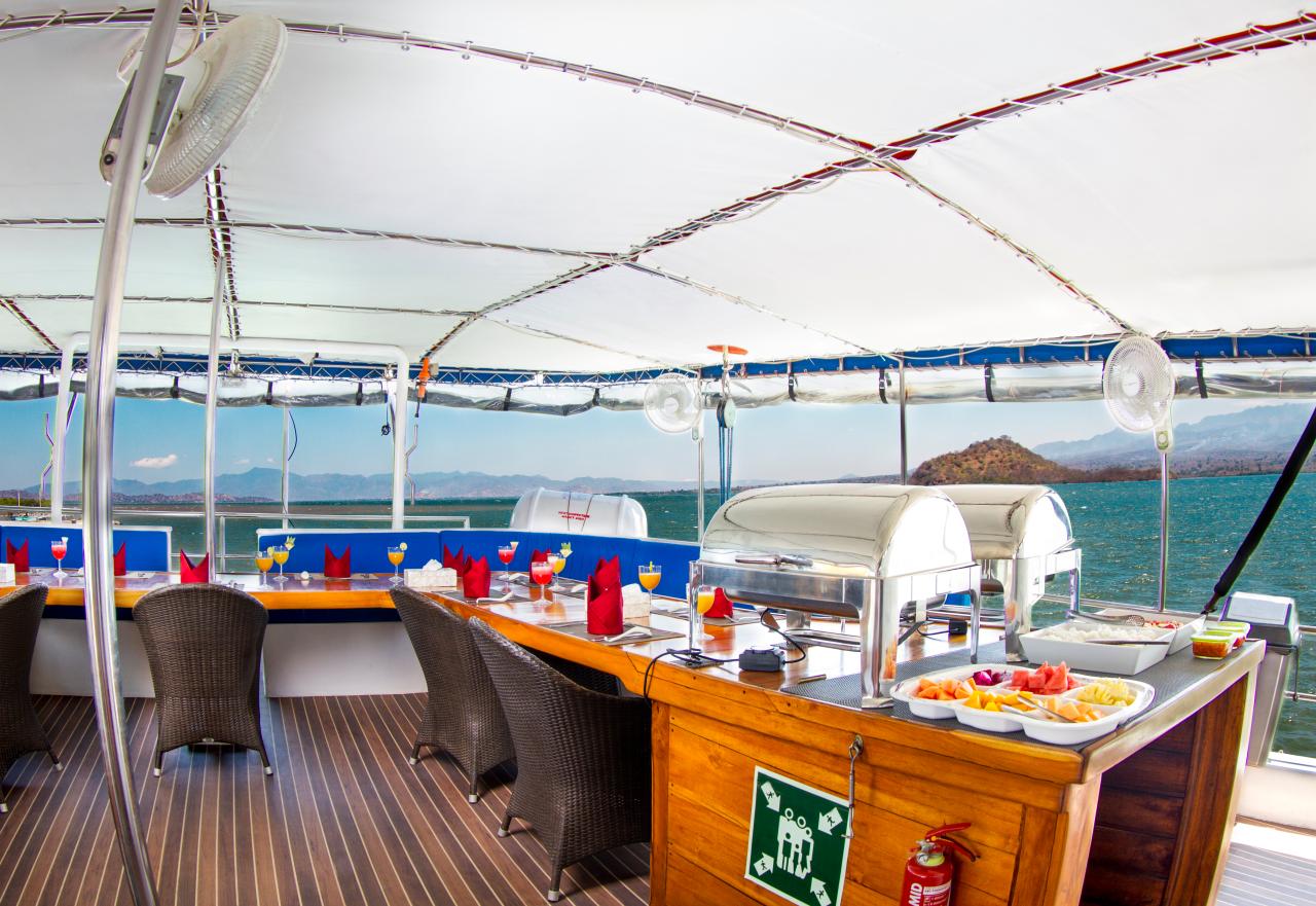 With a maximum of 16 persons on each voyage, there is plenty of room to unwind. The eight guest cabins are divided into two fixed doubles, four fixed twins, and two flexible twin/doubles, all of which are equipped with air conditioning and private ensuite bathrooms with hot water. The covered outdoor dining area is an excellent location for meals and briefings. The air-conditioned saloon features a cocktail bar, plush couches, a charging station, and a giant flat-screen television. Personal storage space for masks and other small equipment items is available on the dive deck, which is likely to be one of the most spacious and comfortable you've encountered. Indo Siren is a preferred choice for underwater photographers and videographers due to designated places for charging and preparing camera and video equipment, as well as separate rinse tanks. Additionally, the vessel features two high-powered Zodiacs, kayaks, laundry, and massage services.