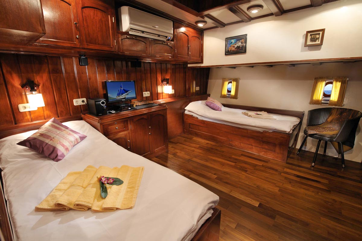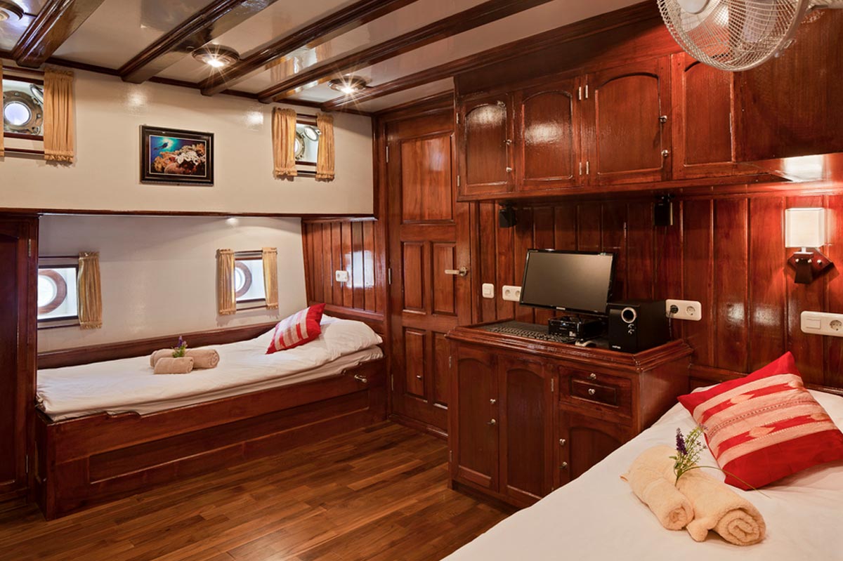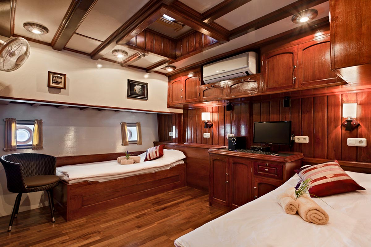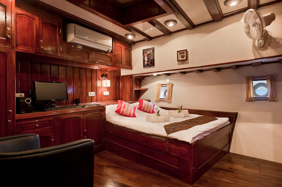 Premium Twin/Double Cabins - Two cabins with convertible twin to double beds, independently controlled air conditioning, ample storage space, and bathrooms with hot water are available. Maximum Occupancy: 2 persons Bed Configuration: Twin or Double Ensuite: Yes Aircondition: Yes, with control in the room Premium Twin Cabin - Four twin-bed cabins provide independently controlled air conditioning, ample storage space, and private bathrooms with hot water. Maximum Occupancy: 2 persons Bed Configuration: Twin (2 Single) Ensuite: Yes Aircondition: Yes, with control in the room Premium Double Cabin - The two spacious double cabins feature independently controlled air conditioning, ample storage space, and bathrooms with hot water. Maximum Occupancy: 2 persons Bed Configuration: Double Ensuite: Yes Aircondition: Yes, with control in the room