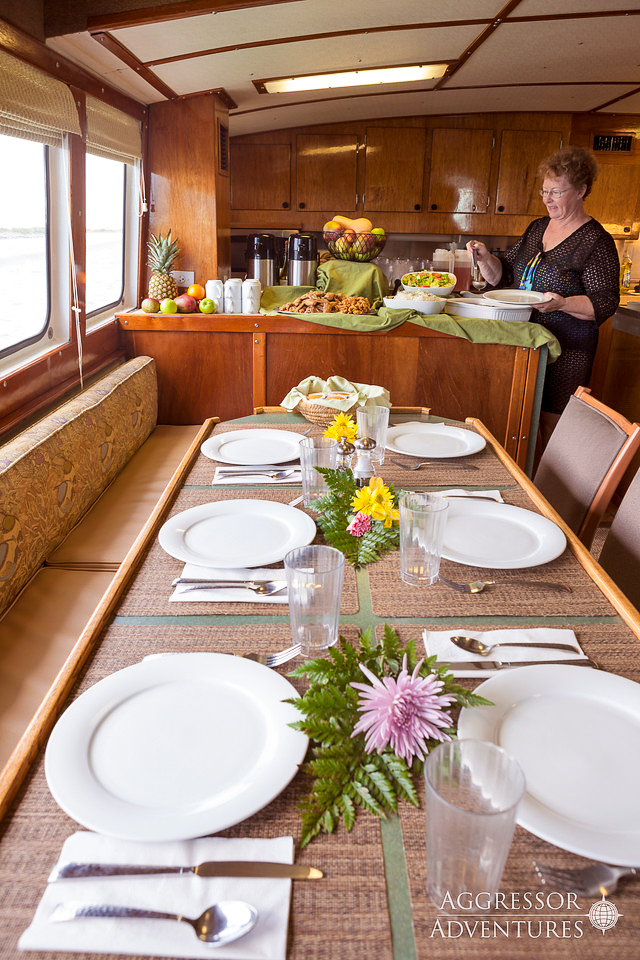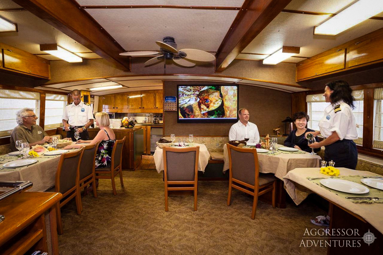 Built and maintained in accordance with local regulatory bodies' specifications as well as the flag country's regulations. Length: 100 ft. Beam: 22 Passengers: 14 Staterooms: 6 Boarding: Saturday 3 pm Check out: Saturday 8 am Since 2012, the Bahamas has become an Aggressor destination.