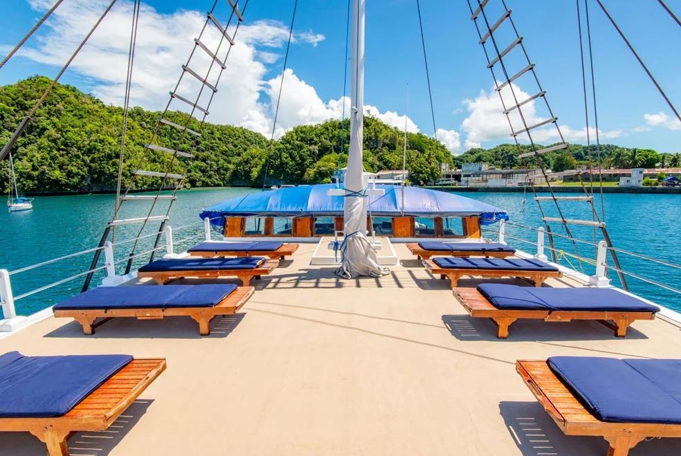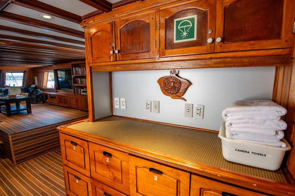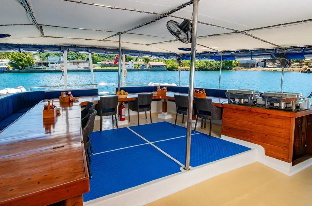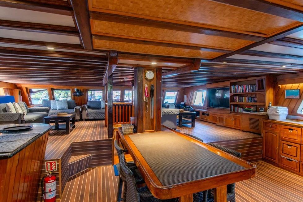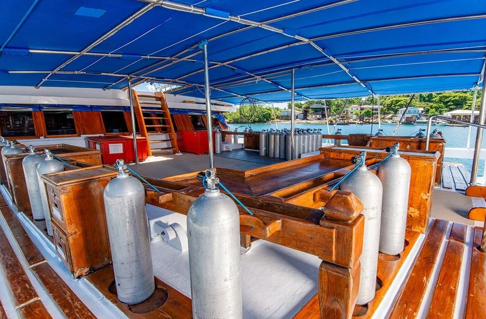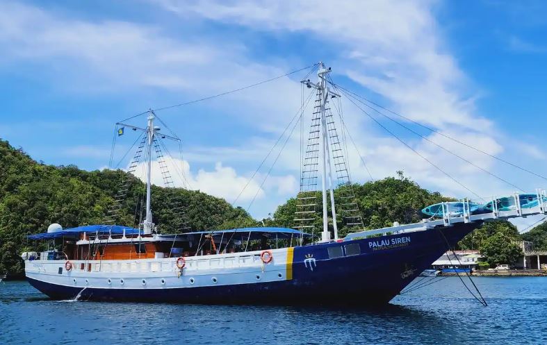 Launched in 2012, the Palau Siren is a 40-meter luxury liveaboard, custom-built by divers for divers on the Indonesian island of Sulawesi. Handcrafted from traditional ironwood and teak, the vessel is a standout presence in Palau’s waters, combining authentic craftsmanship with sophisticated design.Designed to host a maximum of 16 guests per cruise, the Palau Siren ensures spacious, personalized service throughout the journey. Its eight comfortable cabins—offering a mix of double and twin bed arrangements, including two flexible double/twin cabins—are equipped with individually controlled air-conditioning and private ensuite bathrooms with hot water.The dive deck is among the most spacious and well-appointed in the region, offering individual storage areas for gear, separate rinse tanks for scuba and camera equipment, and freshwater showers. This attention to detail ensures convenience and comfort for divers of all experience levels.Guests enjoy gourmet meals in the covered outdoor dining area, while the air-conditioned saloon provides a relaxing retreat with a cocktail bar, plush seating, and a large flat-screen TV. The saloon also includes dedicated workspaces for the charging and preparation of camera and video equipment, making the Palau Siren a top-tier choice for underwater photographers and videographers.Further enhancing the experience, the vessel is equipped with two shaded, high-bottom fiberglass skiffs, a nitrox compressor, diving and camera equipment rentals, kayaks, as well as laundry and massage services. Every detail aboard the Palau Siren has been thoughtfully crafted to deliver a seamless and unforgettable dive adventure in one of the world’s most celebrated marine destinations.