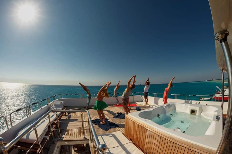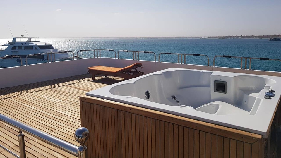 Captain Sparrow is a brand-new, ultra-luxurious vessel that expertly combines contemporary amenities, a somber and elegant style, and a wooden interior. The opulent 43-meter live-aboard cruise offers year-round diving and kiteboarding excursions to the breathtaking reefs and islands located in the central region of the Red Sea.The exquisitely constructed 14 staterooms on board M/Y Captain Sparrow can accommodate up to 28 guests, with 2 king-size beds and 6 twin beds that may be made into single, huge beds. Every cabin features a private bathroom and independently controlled air conditioning. The dining space and saloons are well furnished, and there are entertainment options to encourage you to unwind on board. M/Y Captain Sparrow's skilled culinary team and chef will entice your palate with a variety of regional and international dishes presented in a buffet-style arrangement.There's no lack of places to unwind on Captain Sparrow, as visitors can make use of the following: A 55-inch full HD TV, two sun decks, two saloons, a sauna, a jacuzzi, and two massage chairs. In their spare time, guests are welcome to use the banana boat, quatro, inflatable swimming pool, and surfboards.