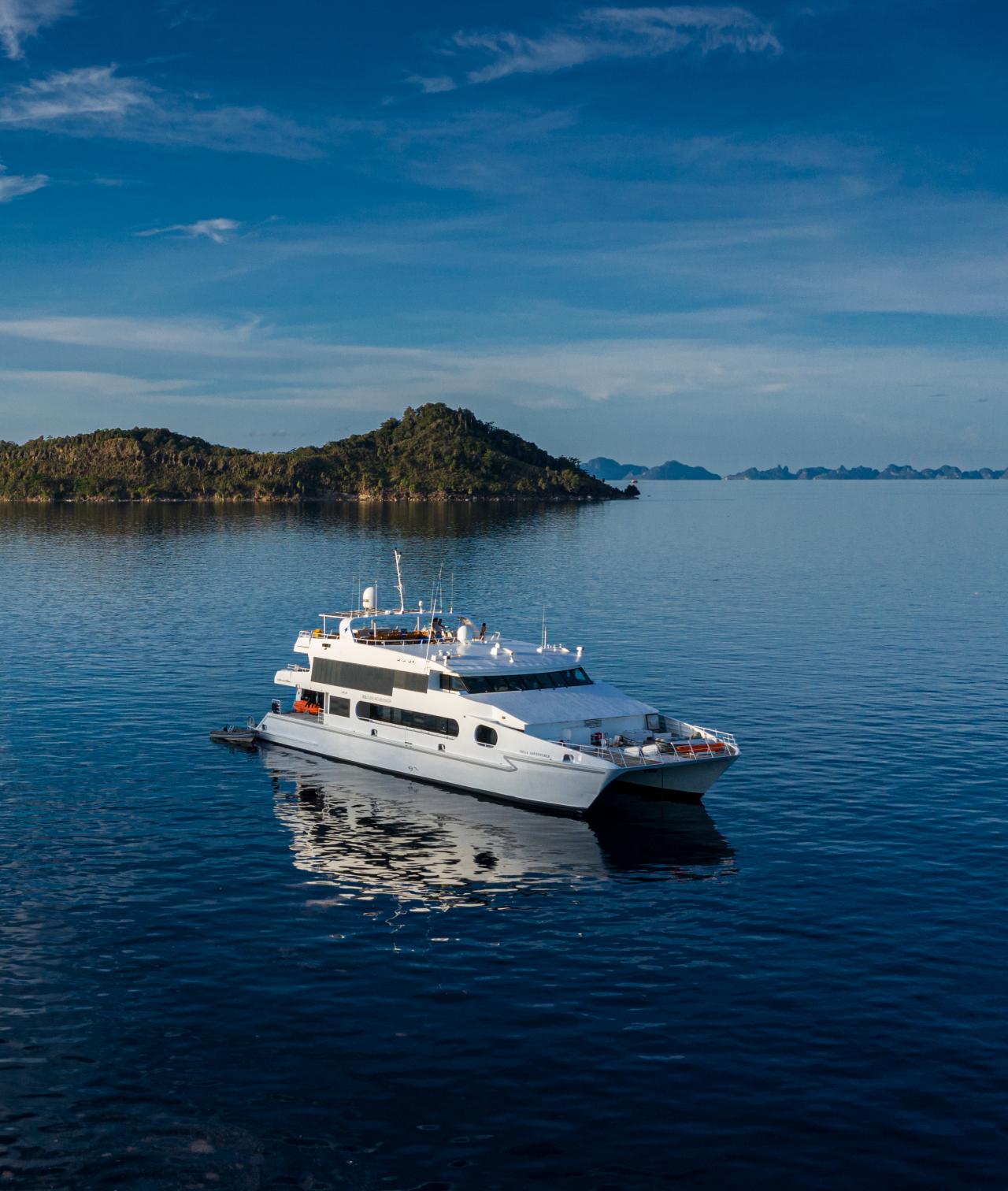 Type and Year Built: Aluminium Catamaran. Refurbished in 2017 (Orginally built in 2000) Port of Registry/Flagged: Indonesia Cruising Itinerary Routes: Indonesia Engine & Propulsion: Two 1380 HP / 1015kW MTU Length: 36m (118 ft) • Beam: 12m (39ft) • Draft :1.5m (4.9ft) Cruising Speed: 10 Knots (Top Speed 23 Knots) Diesel Capacity: 25,000L (6,604 US Gal.) Cruising Range: ± 1600nM (2963KM) Electricity: 2x100kv 240V – 50Hz Navigation: Local Navigation Maps with Furuno GPS Chart Plotter, Radar (Long/Short), Weather Plotter and Depth-Sounder Communication System: VHF/SB Radios, Fleet Broadband Satellite Phone and Internet, Inmarsat-C Ship Safety System: GMDSS with EPIRB, AIS, Life Rafts, Emergency Survival Packs, Semi-Automated Fire SuppressionSprinkler System Fresh Water Capacity: 6,000L (Storage) with On-board Water-Makercapable of producing 1500L of fresh water per day