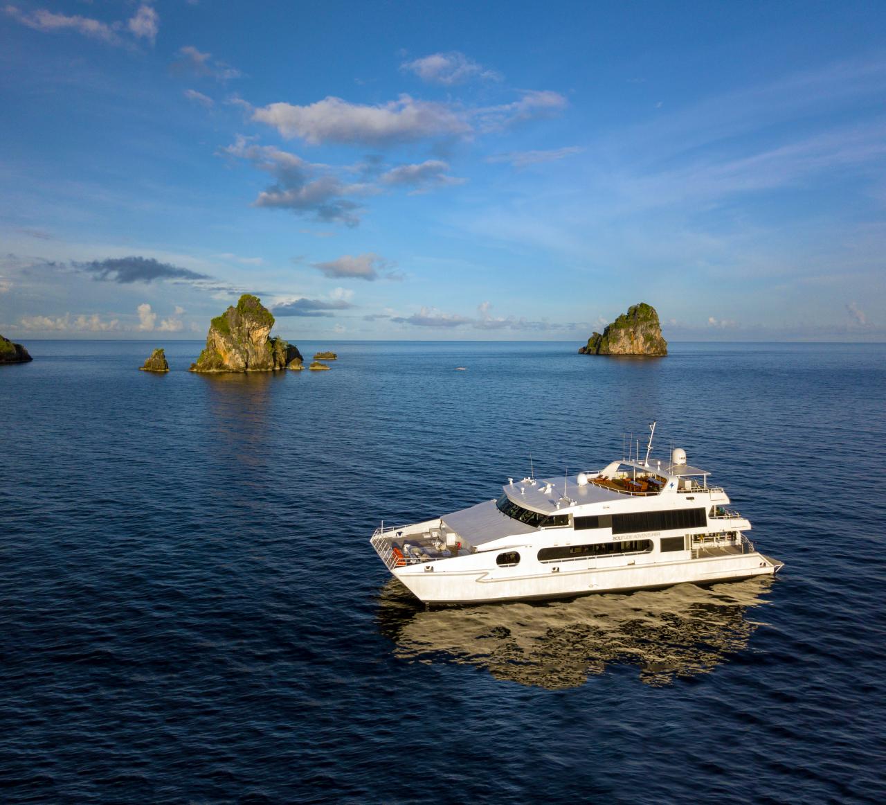 Package Inclusions: Twin/double or quad accommodationGuests can check in from 0800hrs the day (Dinner Included) and check out latest at 1100hrs on the day of the Cruise End -DateFull-board meal plan with in-between meal snacks and all non-alcoholic beverages3 or 4 daily guided boat day dives (including 1 Night Dive) ** All dives are subject to our no-fly/altitude minimum 18 hours policy & cruise itinerary (which may change due to weather and/or level of diving experience of the guests) - No Dives on disembarkation dayReturn transfer to and from the local airport during the cruise embarkation/disembarkation