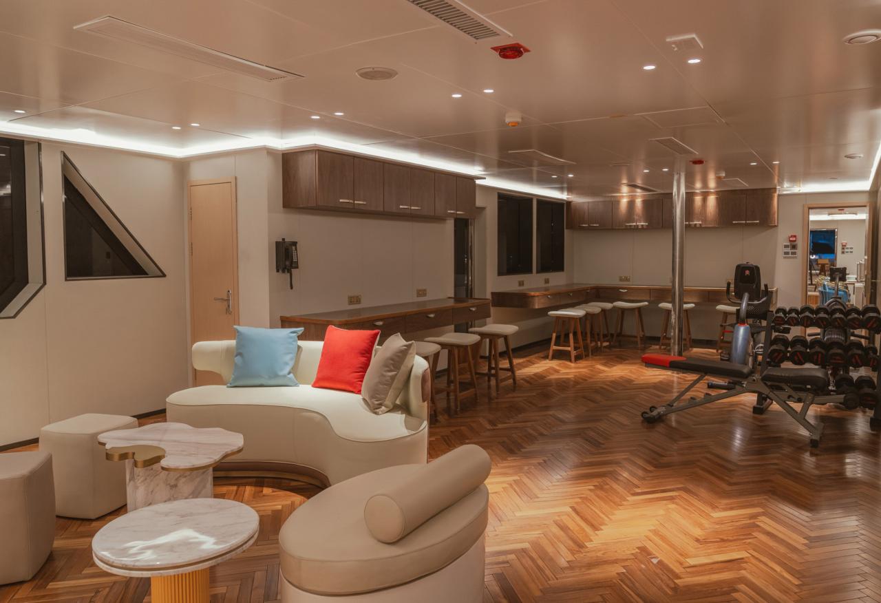 Main Deck Outdoor Seating and a 6-meter Jacuzzi Main Deck Outdoor Bar Spacious Indoor Dining Area with Cafe and Bar Entertainment Salon with Two Televisions equipped with Gaming Consoles, Gym Equipment, Business Centre Camera Bay Sun Deck Seating and Sun Beds Dive Facilities: 3x All-Purpose 7-meter Boats equipped with 200HP Outboard Engines Comfortable and Spacious for Divers Boats are equipped with VHF Radios, GPS, First Aid Kits, DAN Diving Emergency Safety Equipment Rental Equipment Available Onboard