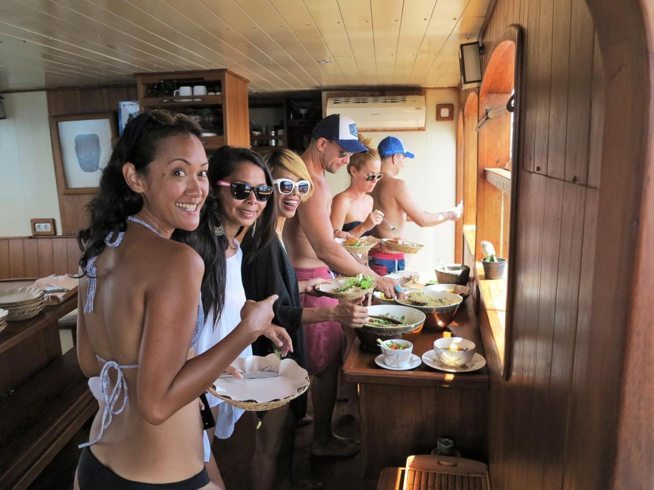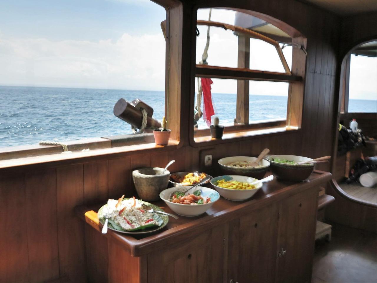 FREE USE OF ALL DIVING EQUIPMENT (BCD, Tank, Regulator, SPG, Wetsuit, Mask, Fins, Weights, and belt, 15 full sets of equipment, and 20 tanks on board (Including 15 lt. Tanks) All tanks are free. Internationally Qualified Dive Guides. (PADI Divemasters) Berth in a luxury air-conditioned cabin (double/twin/triple) each with a private en-suite bathroom and hot shower. Towels, soap, shower gel and shampoo. Daily cabin makeup. Full board meals Asian & international food (All dietary needs catered for on request) Early morning snacks if early activities are planned. Warm breakfast buffet style. Served or buffet lunch. Afternoon snacks, cakes, fruits, and small bites. Served buffet or BBQ dinner. Drinking Water, tea, coffee, and non-alcoholic soft drinks and juices. Use of all snorkeling equipment. Use of Sea Kayaks and Stand Up Paddleboards Fresh water shower on deck. Plenty of relaxing space. Outdoor sleeping mattresses. Indoor saloon with library. All excursions by Carpe Diem staff Beach visits, sunset walks. Dedicated multi-lingual Cruise Director. 2 x Transfers i.e. to/from Carpe Diem. (Nearest Airport, Ferry Terminal, or Guest Hotel depending on location)
