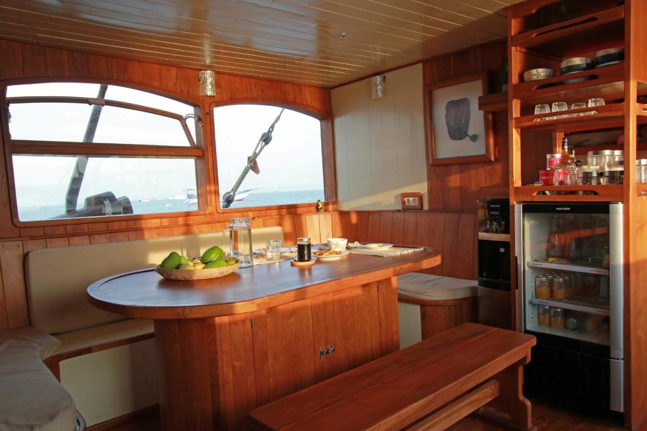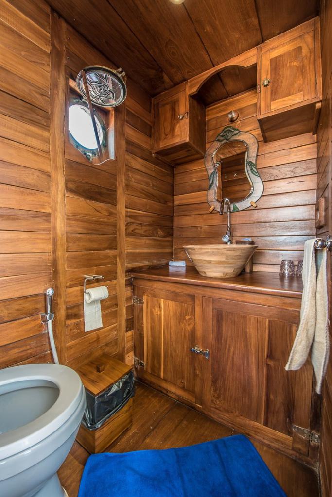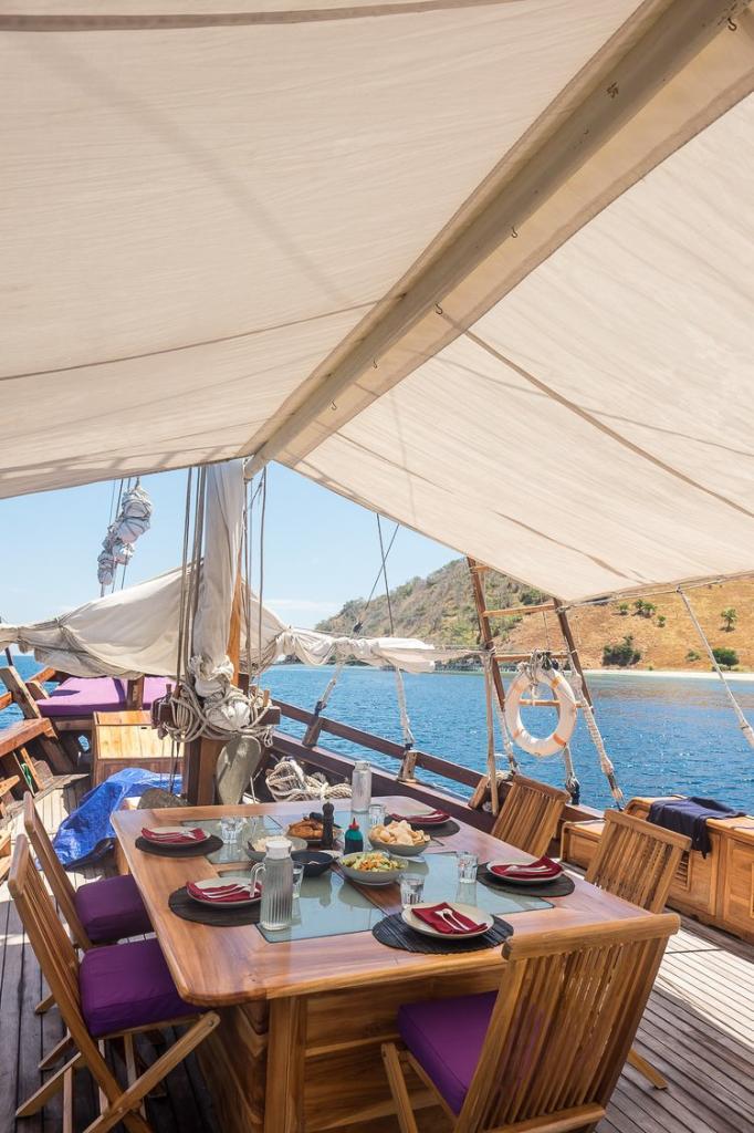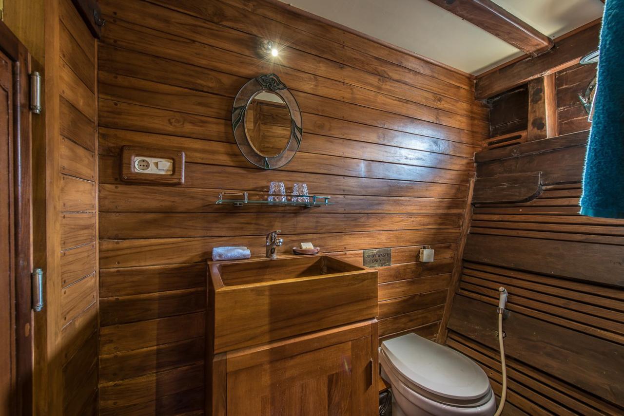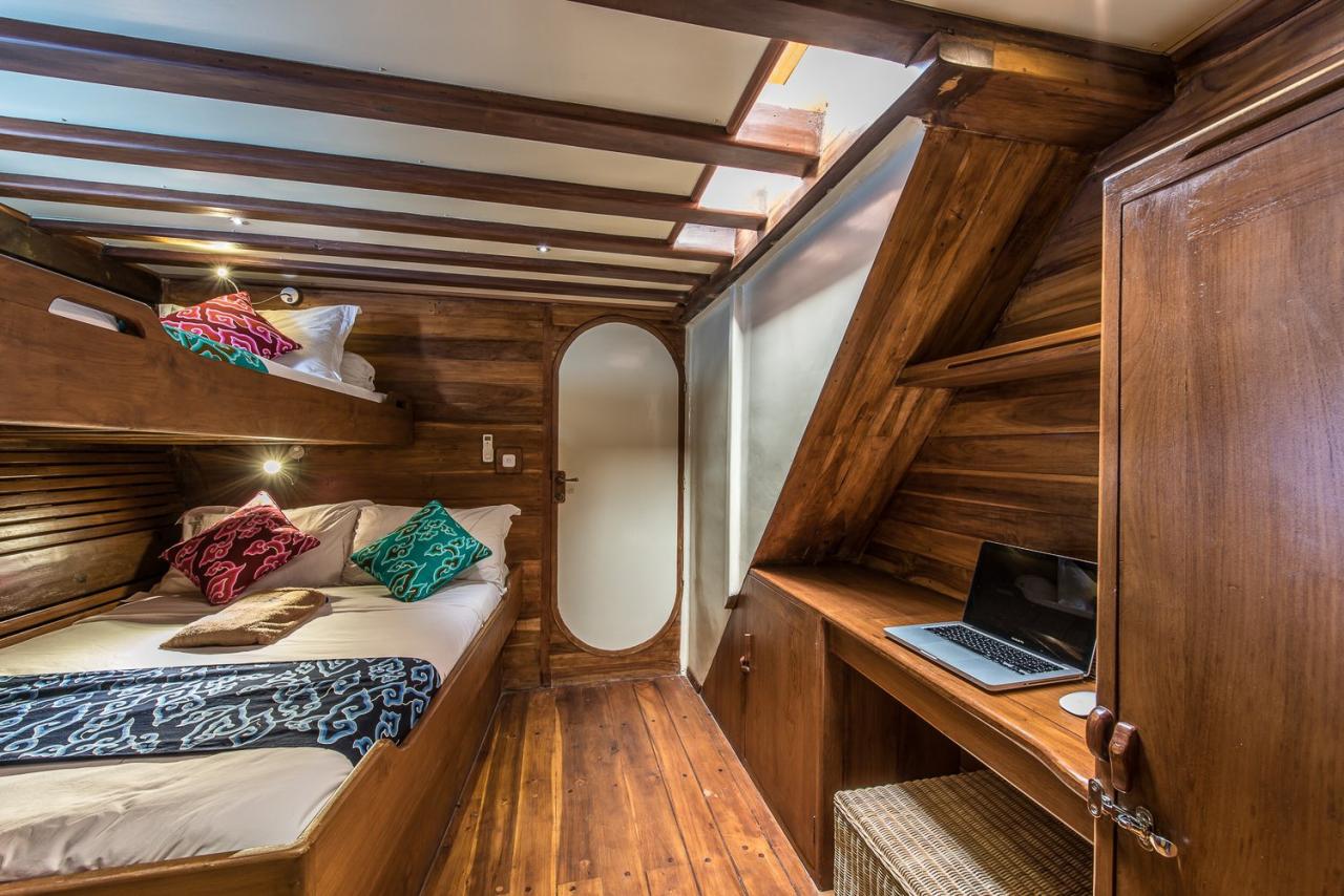 Main Deck Cabin/ Pala (Nutmeg) - This cabin is located on the main deck spanning almost the entire width of the boat. It is adorned with large forward-facing windows and a skylight. The Pala cabin has an en-suite separate shower and bathroom and is also equipped with an individually controlled air conditioning unit. Maximum Occupancy: 2 persons Bed Configuration: Double Ensuite: Yes Aircondition: Yes, with control in the room Lower Deck Cabin (Cengkeh (Clove), Pandan (Pandan), and Kayu Manis (Cinnamon) - Each cabin has its own air conditioner and includes an en suite bathroom with a shower, sink, and toilet. Each cabin has a desk, chair, and lots of storage space. The number of people and whether the group consists of singles, friends, or couples will determine which of the three cabin options will be assigned. Maximum Occupancy: 2 persons Bed Configuration: Double or Twin Ensuite: Yes Aircondition: Yes, with control in the room