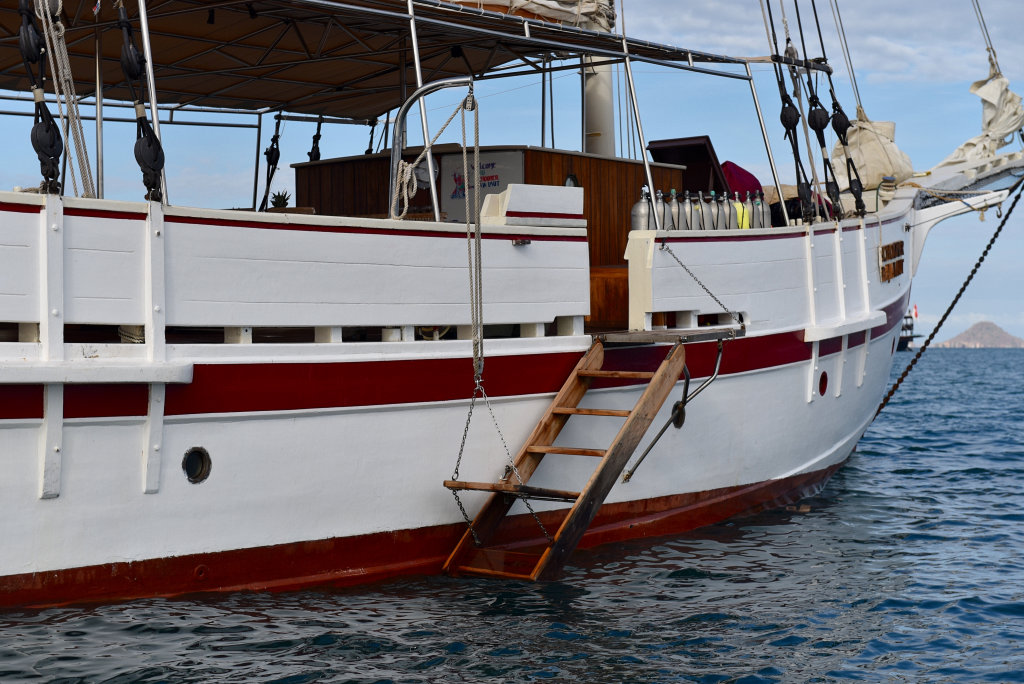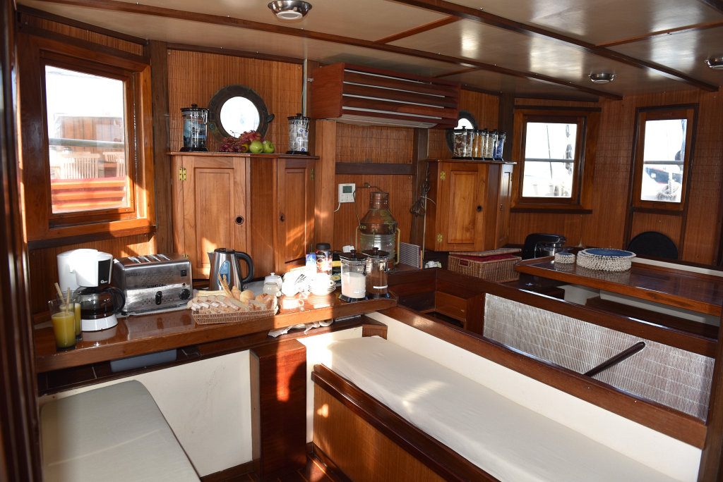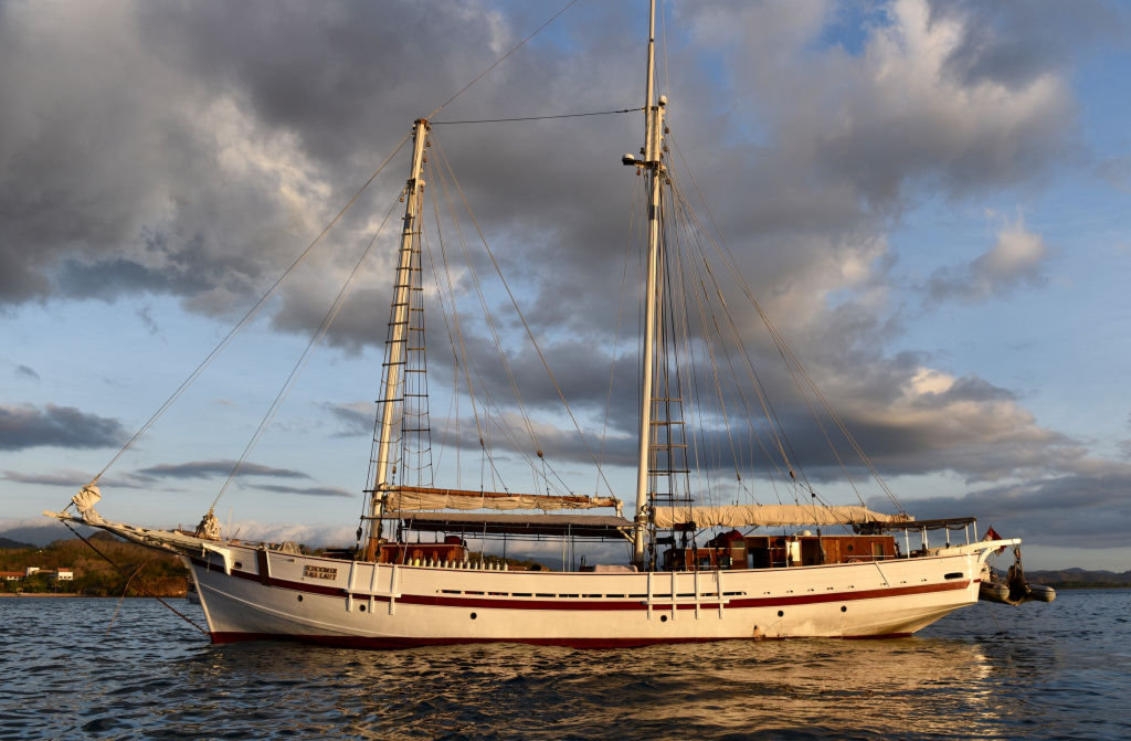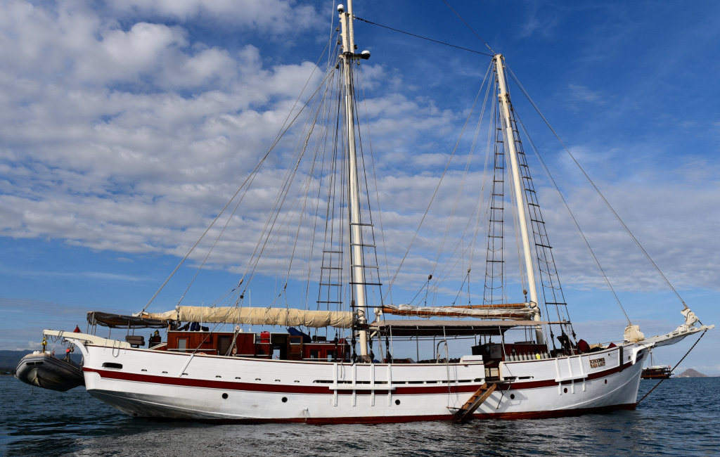 Type: Wooden hull, 2 decks Length: 31m Beam: 7.2m Draft: 2.5m Engine: 300 Hp Yanmar Generators: 2 x 28 kW Water Makers: 12,000 litres/day Navigation and Communication: GPS chart plotter, radar, VHF radio, satellite phone, mobile Electricity: 220v 2 pin, 220v international multi Safety: Firefighting system, smoke detectors, CO2 monitors, fire alarms, extinguishers, fire blankets, life jackets and night watch. AED onboard.
