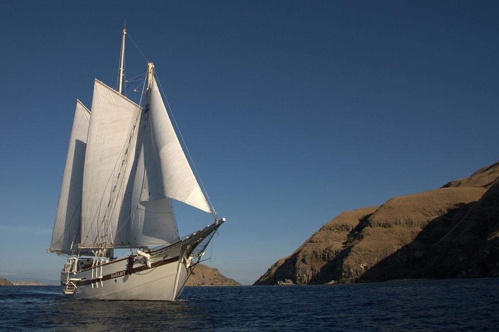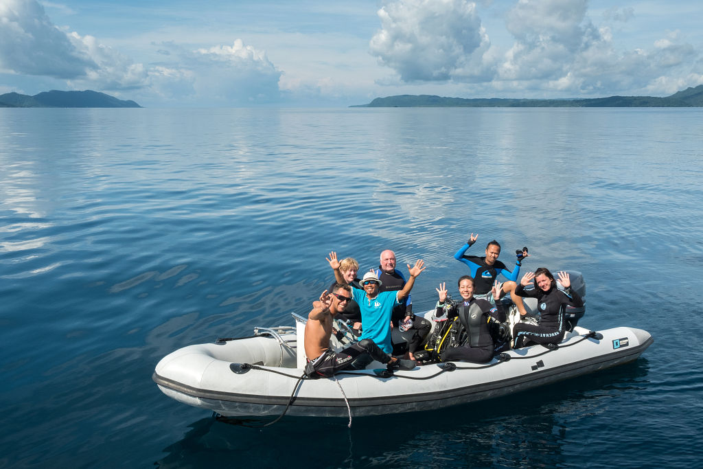 Asia's geography, climate, logistics and infrastructure present its own unique challenges and, with this in mind, the Raja Laut was designed with the specific requirements for yacht charter in South East Asia. Raja Laut means 'King of the Sea' and stepping on board this 'schooner style' inspired yacht, built from tropical hardwood, you will experience a truly regal sense of sailing the Indonesian seas; freedom, style and comfort. Itineraries include the areas of Komodo, Raja Ampat, Banda, Flores and Alor.She comfortably accommodates 12 guests in 6 cabins (3 double bed cabins, 3 twin bed cabins), each with ensuite, mini safe, individually controlled air-conditioning and fan.On the same level as the cabins is a lounge area, fully air-conditioned with a 49" HD flat screen, movie, music & book library, board games and mini-bar.On the stunning teak upper deck are multiple beds for sunbathing or lounging, both in the sun and under shade, and a central dining table where meals are served alfresco under a large awning. All diving is done from two large RIBs with outboards to get you to the perfect dive spot every time. She offers free NITROX, all diving and safety equipment and two dive guides. SMBs are provided FREE of charge on-board.