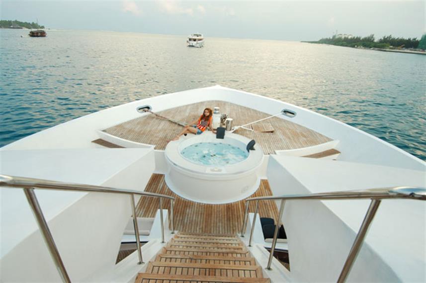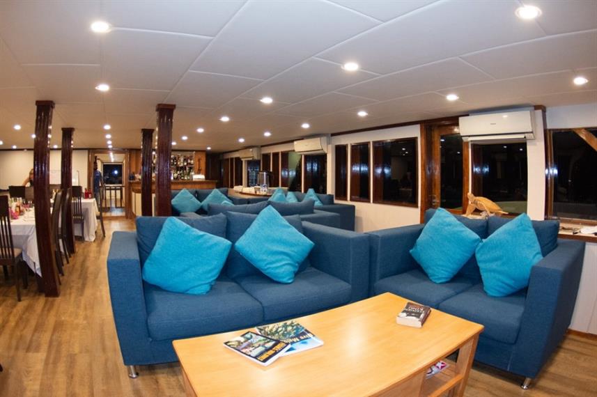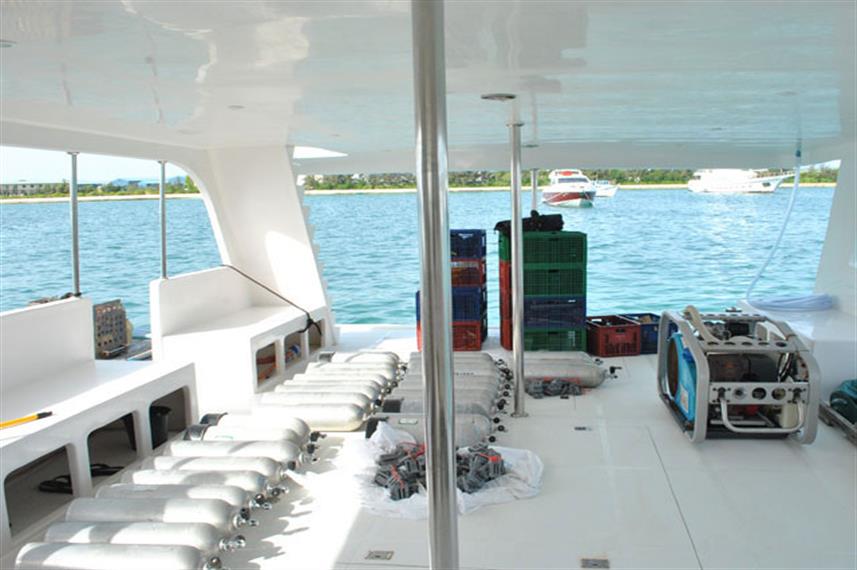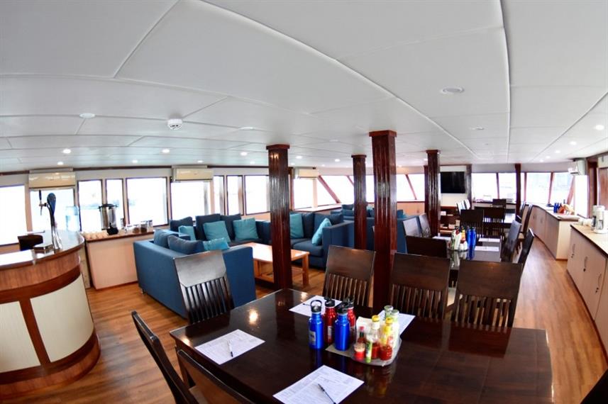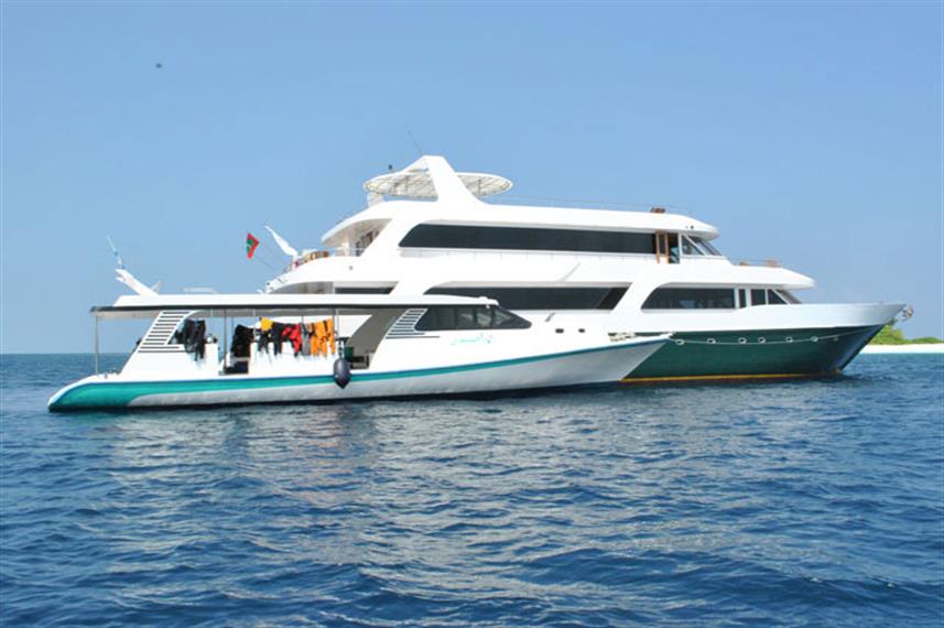 Type:Wooden hull, 4 decks Length:35m Beam:9.4m Draft:2.7m Engine:500 HP Mitsubishi Generators:2 x 40 kW Water Makers:12,000 litres/day Navigation and Communication: GPS chart plotter, VHF/CB radio, satellite phone, mobile Electricity: 220 V and 110 V 3-pin (UK) Safety: Firefighting system, smoke detectors, CO2 monitors, fire alarms, extinguishers, fire blankets, life jackets and night watch. EPIRB. AED onboard the main vessel and diving dhoni