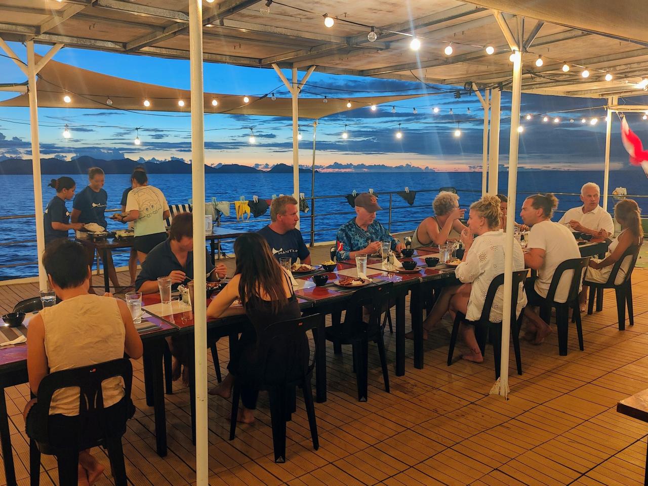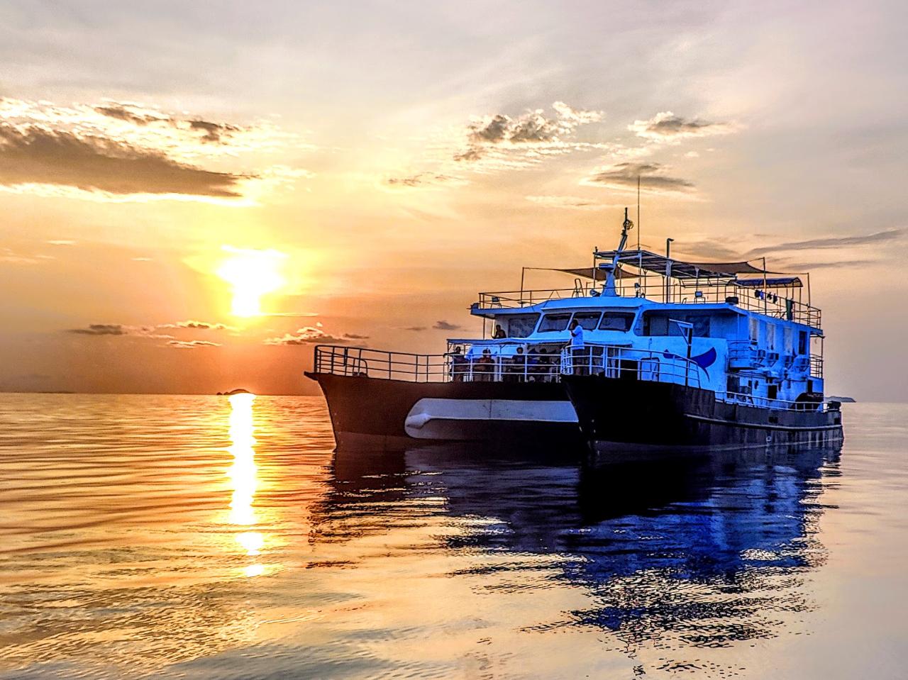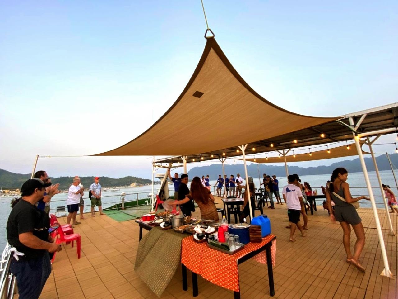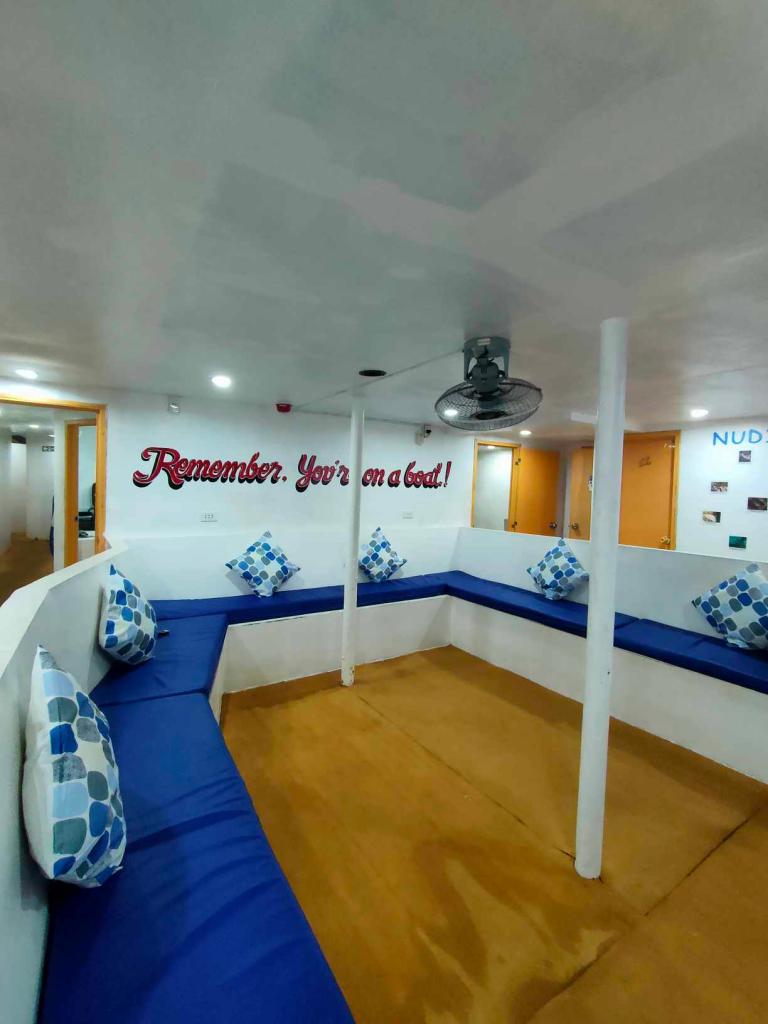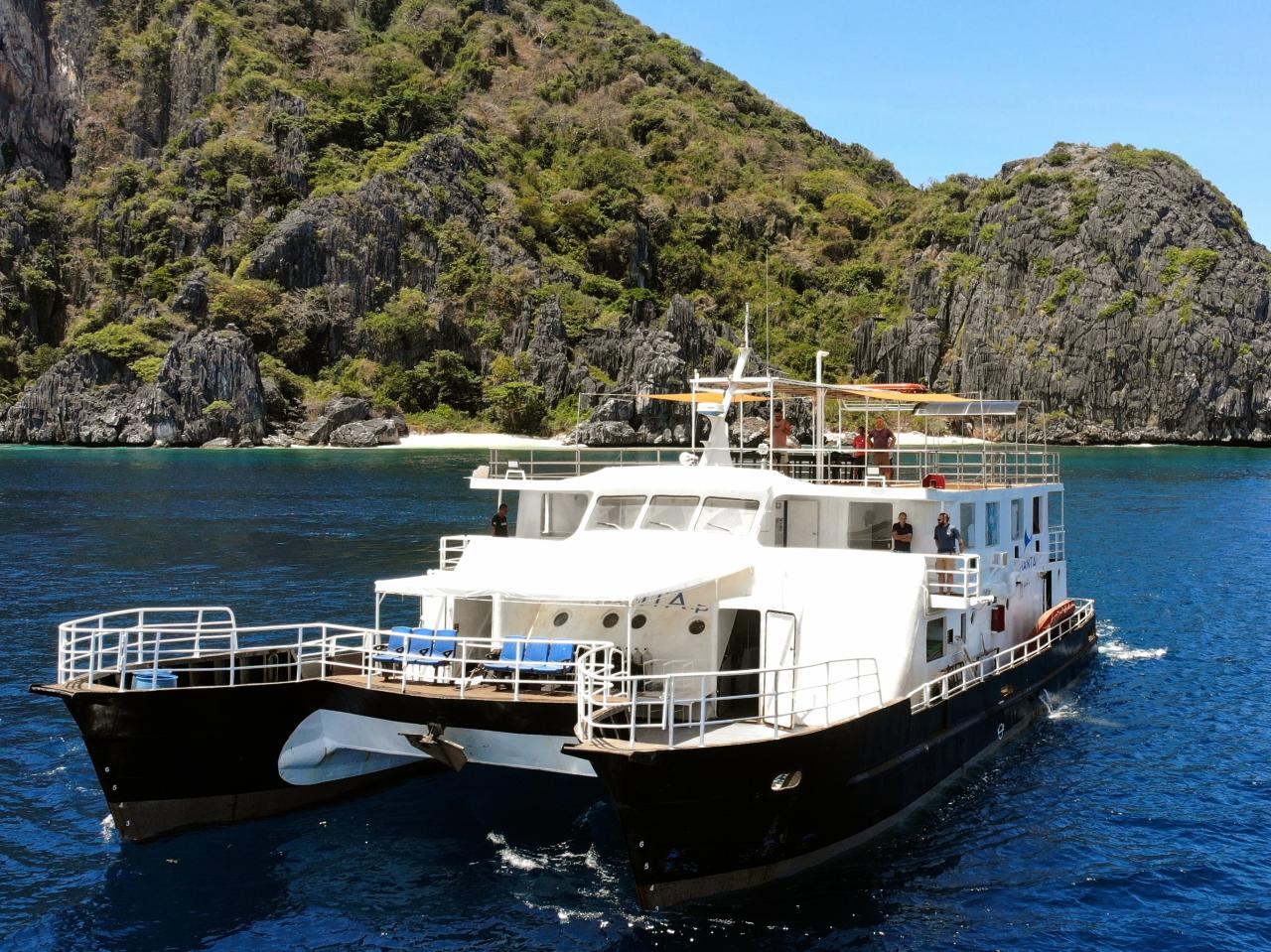 The best liveaboard diving experience is what the spacious and stable twin-hulled catamaran Navis 1 is designed to provide. Relaxation and sociability are just as crucial on the Navis 1 as diving. While the outdoor dining area allows guests to have delicious meals while taking in the environment, the indoor lounge offers a cozy space for storytelling and watching presentations. The largest feature of the Navis 1 is its expansive roof deck, which has a bar and lots of seating. It's the perfect spot to unwind after an exciting diving day and enjoy the expansive views of Palawan's breathtaking coastline.The Navis 1 offers five twin shared rooms, each with a large window, air conditioning, ample storage space beneath the bed, and an ensuite bathroom with a hot shower. Single passengers may be partnered with another guest, but never with someone from the opposite sex.Navis 1 also has four double rooms with air conditioning, a large window, plenty of storage beneath the bed, and a private bathroom with a hot shower. Double rooms are suitable for singles who do not like to share a room or couples (70% additional cost).