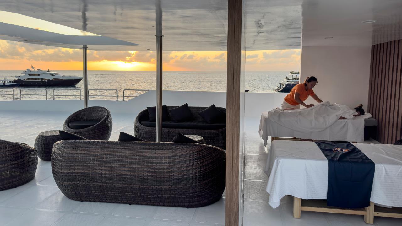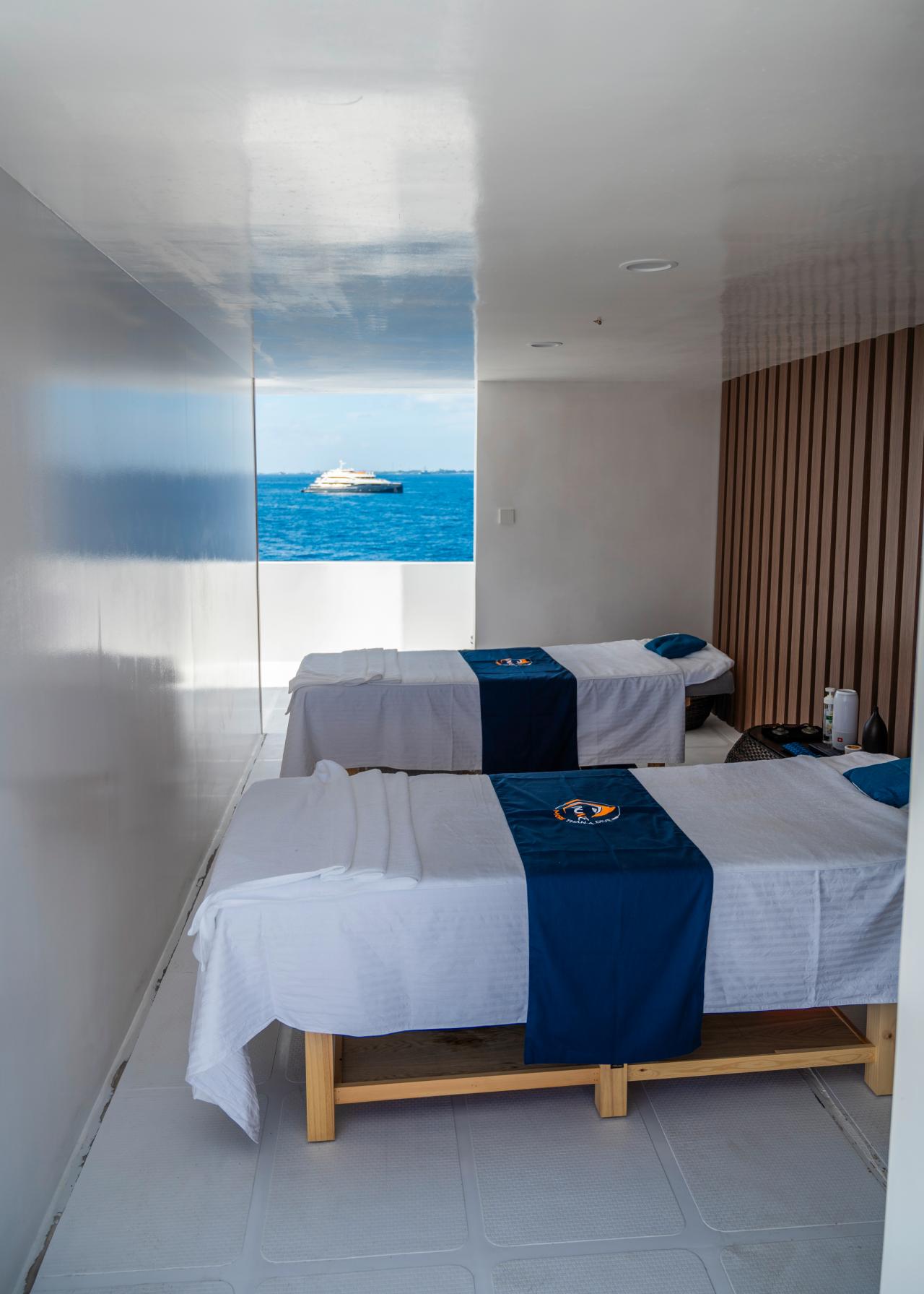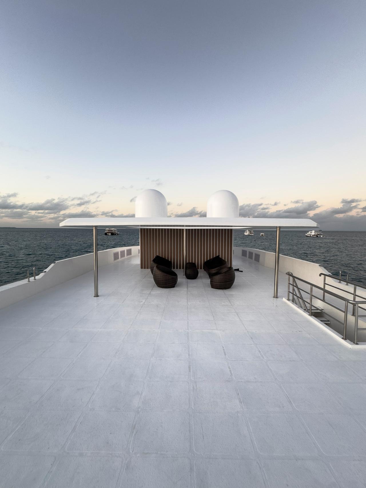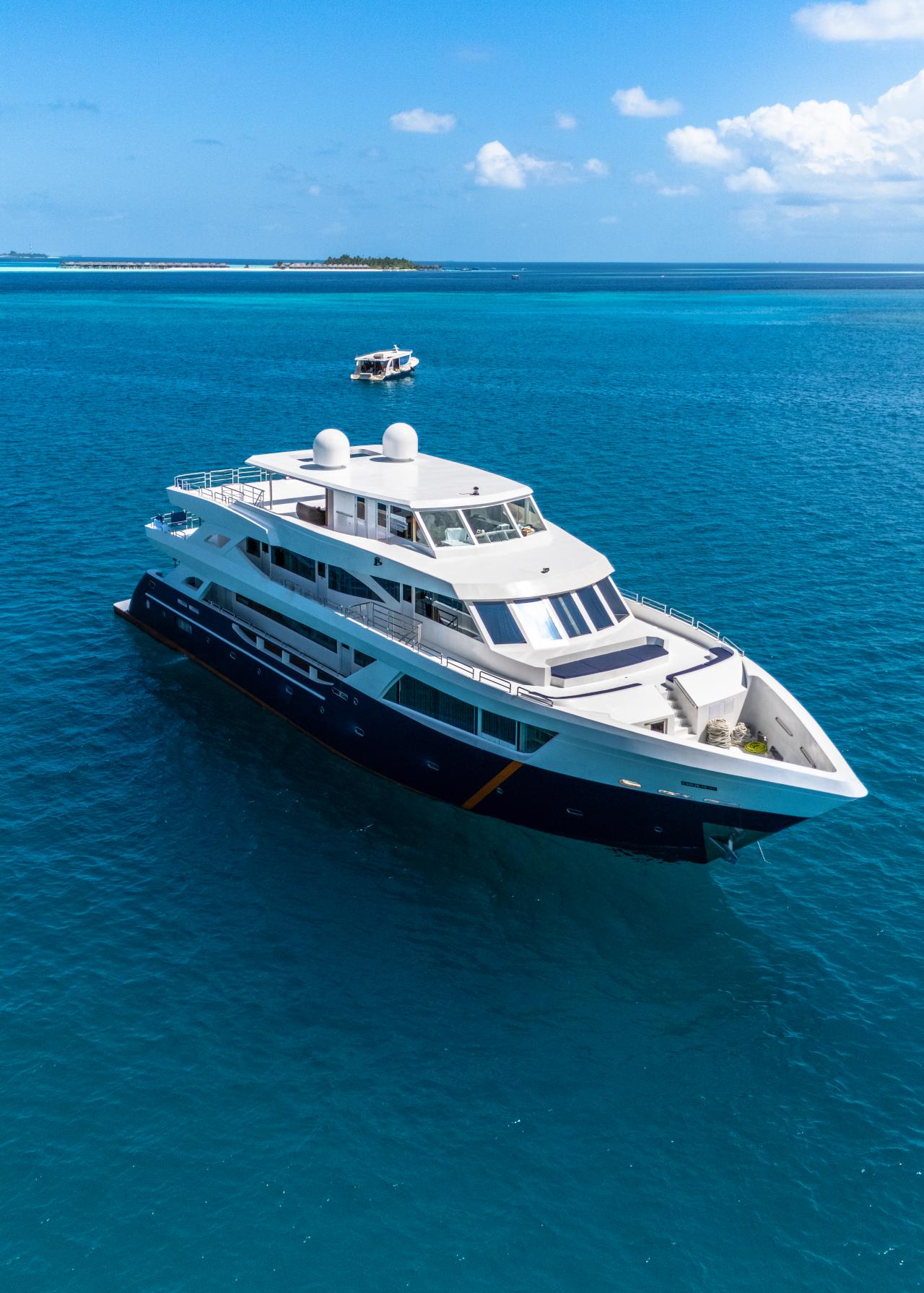 The liveaboard vessel measures 42 meters in length and will navigate the Indian Ocean across all seasons. It features 16 double cabins, six of which offer sea views, each equipped with private bathrooms and air conditioning to provide a comfortable environment amidst the warm climate of the Maldives.Meals, including breakfast, lunch, and dinner, will be served outdoors, allowing guests to enjoy the breathtaking views that remain perpetually captivating. Additionally, Wi-Fi is accessible on board, and a designated area for massage services will be available on the sundeck.