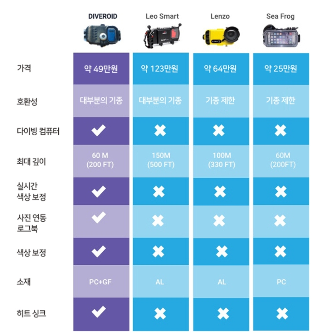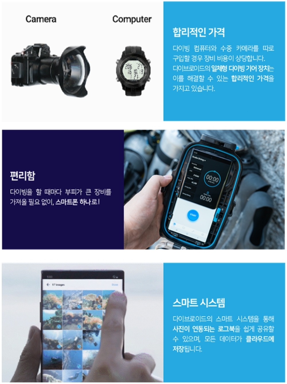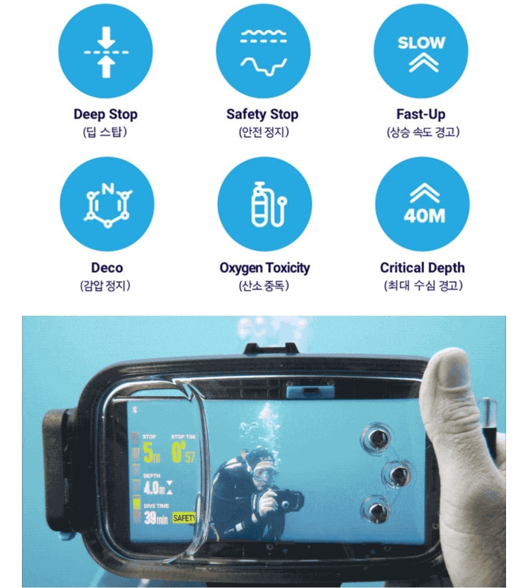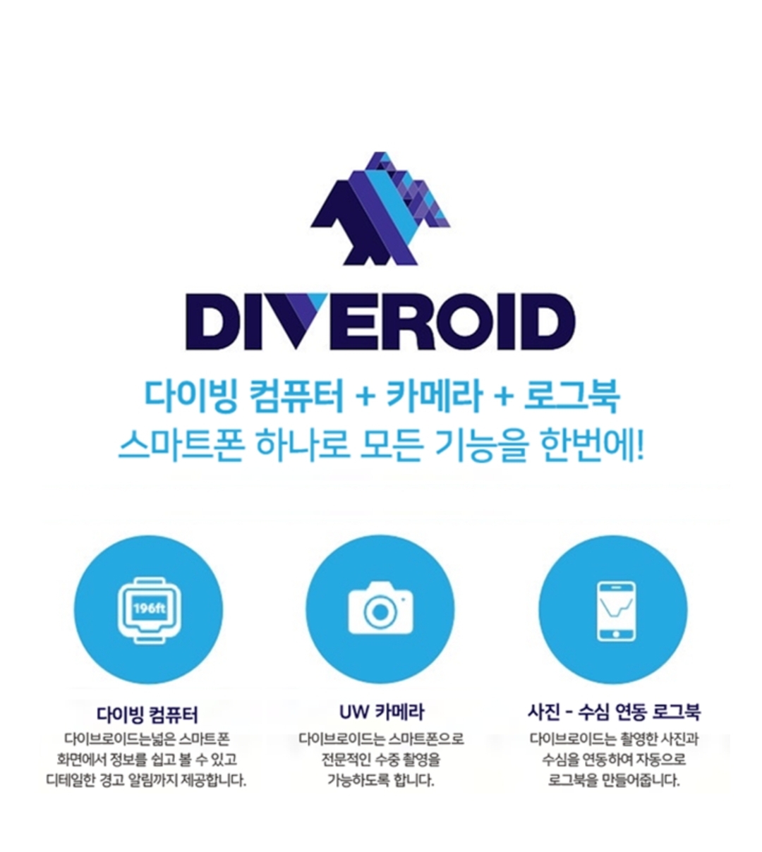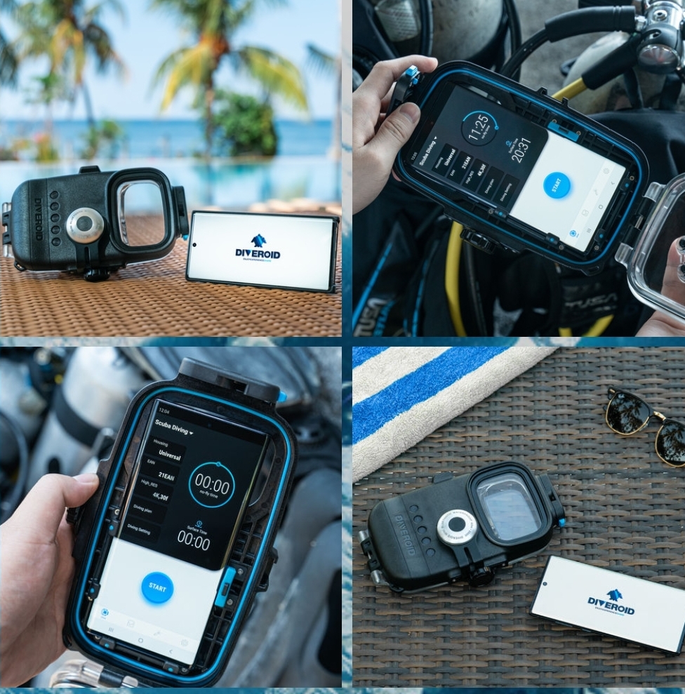 If I have one dibroid, You can use all functions such as diving computer / camera / compass / logbook. Available in all hand-wrapping models You don't have to buy an expensive diving computer housing camera You can upload it on your phone Enjoy scuba diving, free diving, and playing in the water