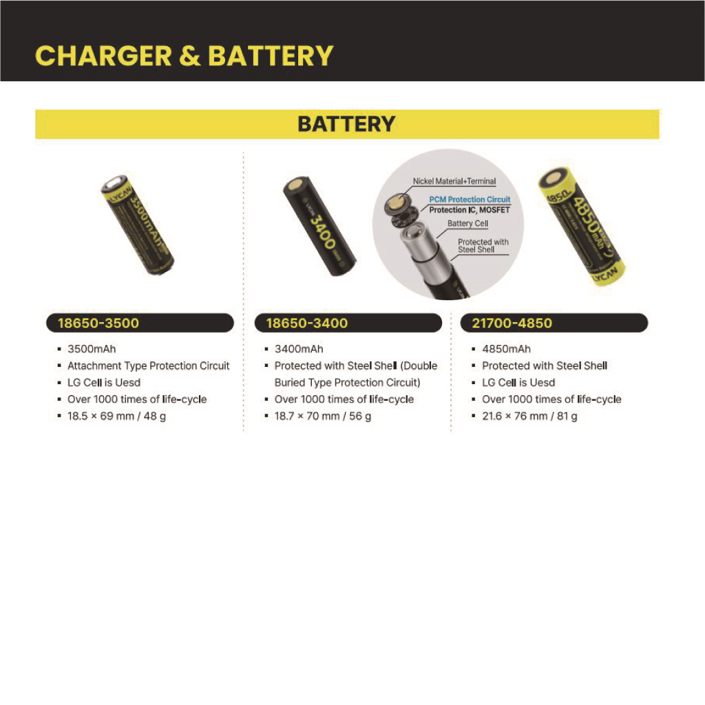 • 3400mAh• Protected with Steel Shell (Double Buried Type Protection Circuit) • Over 1000 times of life-cycle • 18.7 x 70 mm/56 g